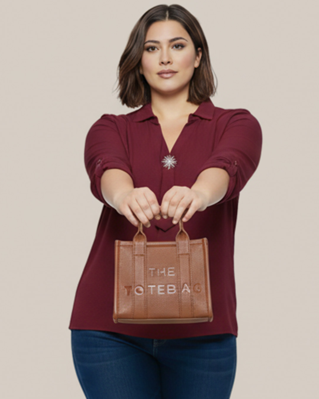 Bolso Mini Tote Bag ▷ ¡El complemento estrella que tu look necesita! Este mini tote bag en color burdeos es el accesorio imprescindible de la temporada. Con su tamaño perfecto y una cinta ajustable del mismo tejido para llevarlo tipo bandolera, es ideal para tus días más dinámicos. Combina funcionalidad con estilo, perfecto para no perder el glamour. ¡Hazte con el tuyo!