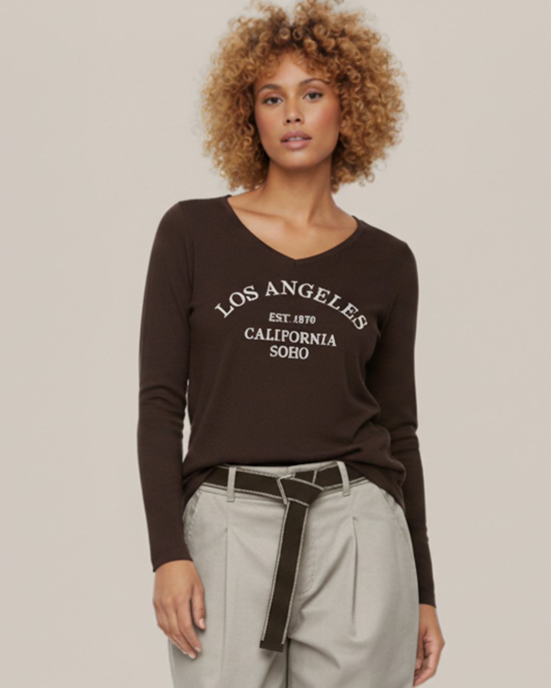 Camiseta Los Ángeles ▷ ¡Pisa fuerte con un look casual y urbano! Esta camiseta de manga larga, es la clave para un estilo desenfadado. Su estampado «Los Ángeles» te transportará a la costa californiana con un toque retro-chic. Ideal para combinar con tus vaqueros favoritos y crear un outfit cómodo. ¡Hazte con la tuya y siéntete en tendencia!