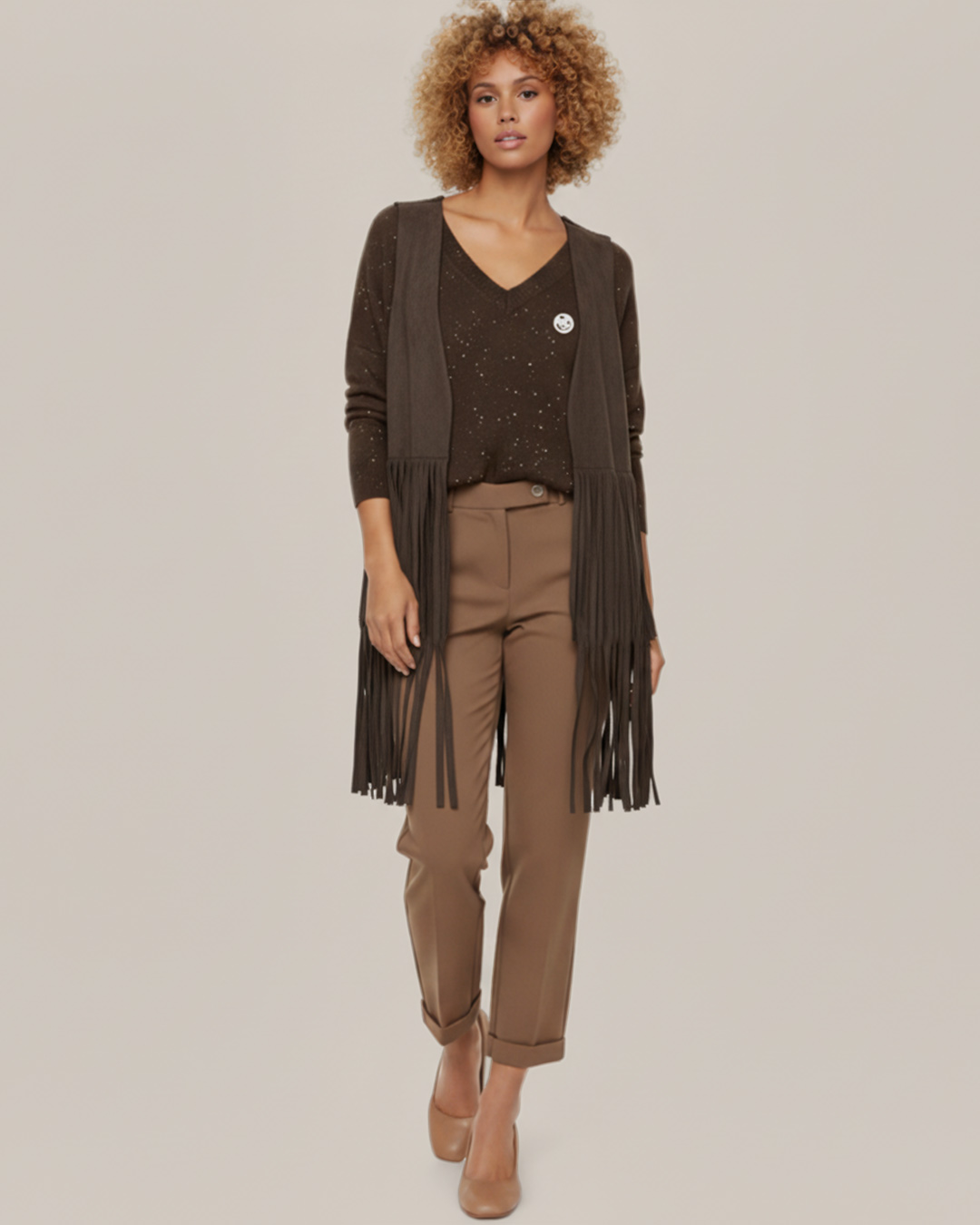 Chaleco Flecos Ante ▷ ¡El vibe bohemio que tu outfit necesita! Este chaleco de flecos largos, con un sofisticado tacto de ante, es la prenda clave para un estilo juvenil y lleno de personalidad. Los flecos en cascada crean un movimiento espectacular. Llévalo sobre tu camiseta, blusa o vestido favorito para un look festivalero o urbano-chic. ¡Añádelo ya a tu cesta y marca tendencia!