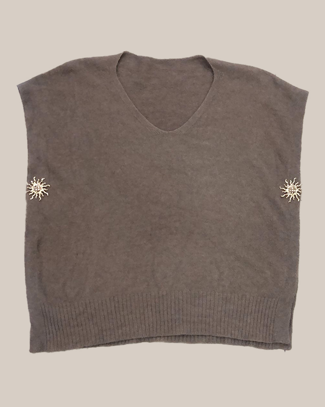 Chaleco Poncho Apliques ▷ ¡El chaleco más chic para tu layering! Este Chaleco abierto en los laterales estilo poncho es ideal para conseguir un look juvenil y a la moda. Confeccionado en un suave tejido tacto lana y con un favorecedor cuello de pico, destaca por sus apliques dorados. ¡El toque de tendencia low cost que no te esperabas!