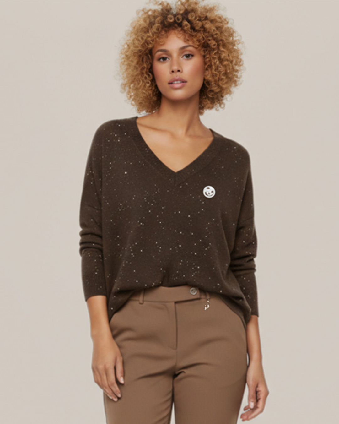 Jersey Destellos ▷ ¡Ilumina tu look este invierno! Este jersey de escote pico y con un suave tacto en lana, es la clave para un outfit chic y abrigado. Su diseño se adorna con pequeños destellos dorados que le dan un toque de brillo y un aire juvenil. Ideal para combinar con tus prendas favoritas para un estilo dinámico. ¡El must-have de la temporada!