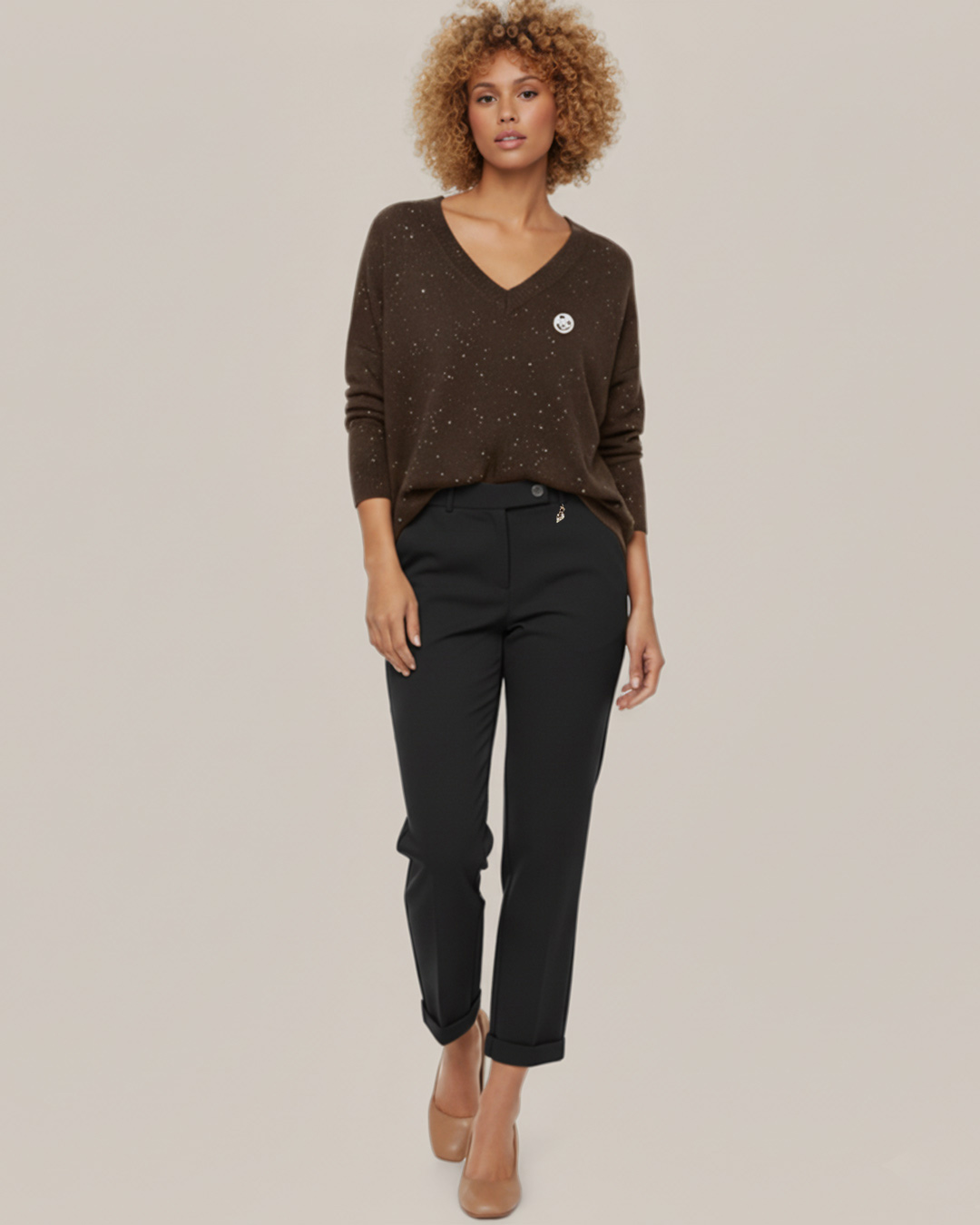 Pantalón Perfect Fit ▷ ¡El pantalón que sienta de fábula gracias a su tejido y corte súper favorecedor! Confeccionado en punto roma con un toque de elastán, se ajusta y estiliza sin apretar. Diseño de tiro medio, bolsillos y bajo vuelto, un detalle trendy. Ideal para looks elegantes o más casual, es pura versatilidad. ¡Un must-have de la moda actual que debes añadir a tu cesta!