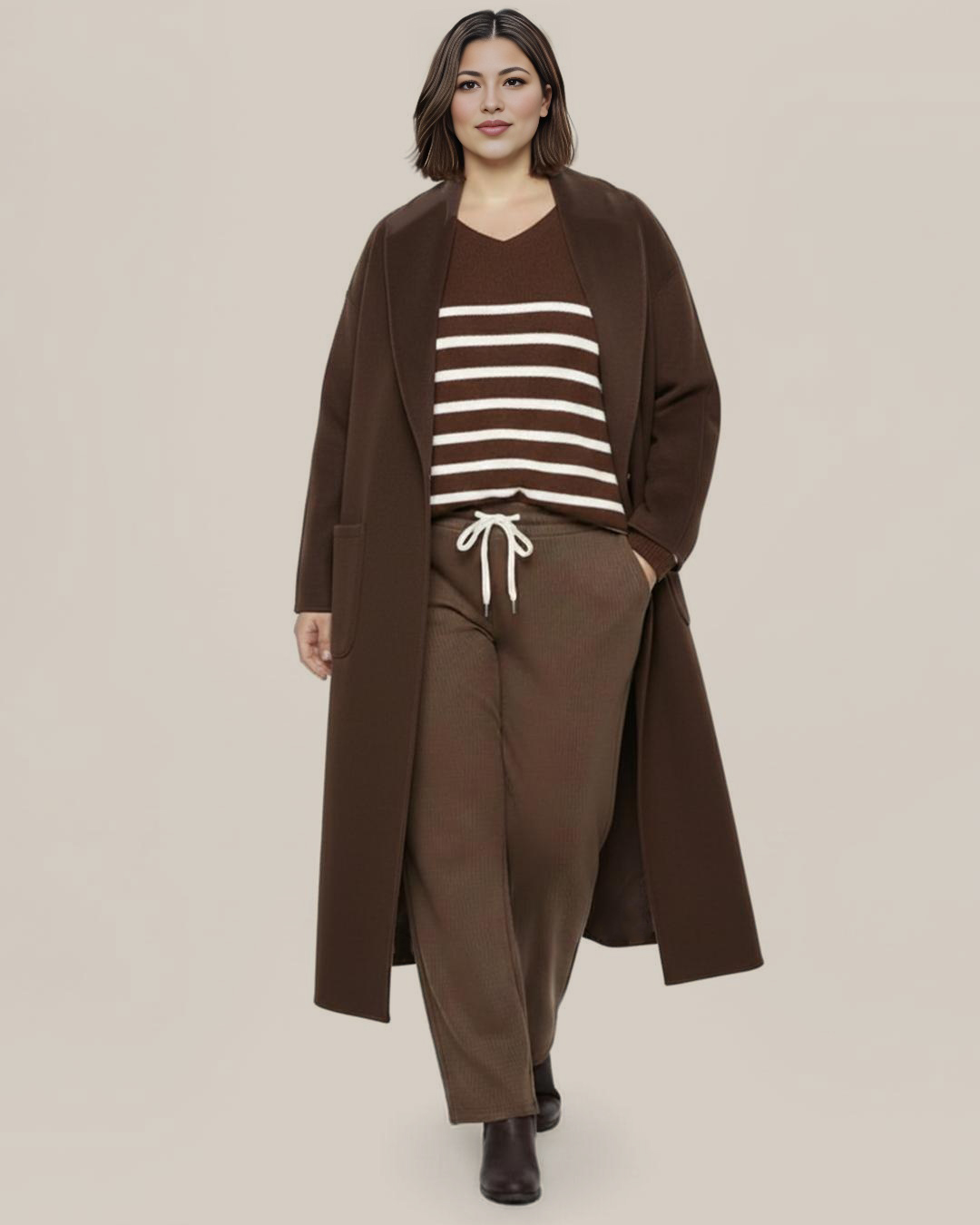 Abrigo Bouclé ▷ ¡Abrígate con el estilo sofisticado y el tacto suave del tejido bouclé más deseado! Este abrigo largo es perfecto para tallas grandes, ofreciendo un fit juvenil y chic. Tiene cuello solapa, corte abierto y bolsillos de parche que lo hacen muy trendy. Una prenda versátil low cost que eleva cualquier look. ¡No esperes, compra ahora en Quiles_Shop!