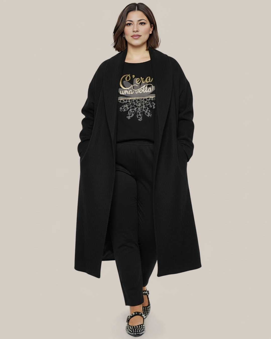 Abrigo Bouclé ▷ ¡Abrígate con el estilo sofisticado y el tacto suave del tejido bouclé más deseado! Este abrigo largo es perfecto para tallas grandes, ofreciendo un fit juvenil y chic. Tiene cuello solapa, corte abierto y bolsillos de parche que lo hacen muy trendy. Una prenda versátil low cost que eleva cualquier look. ¡No esperes, compra ahora en Quiles_Shop!