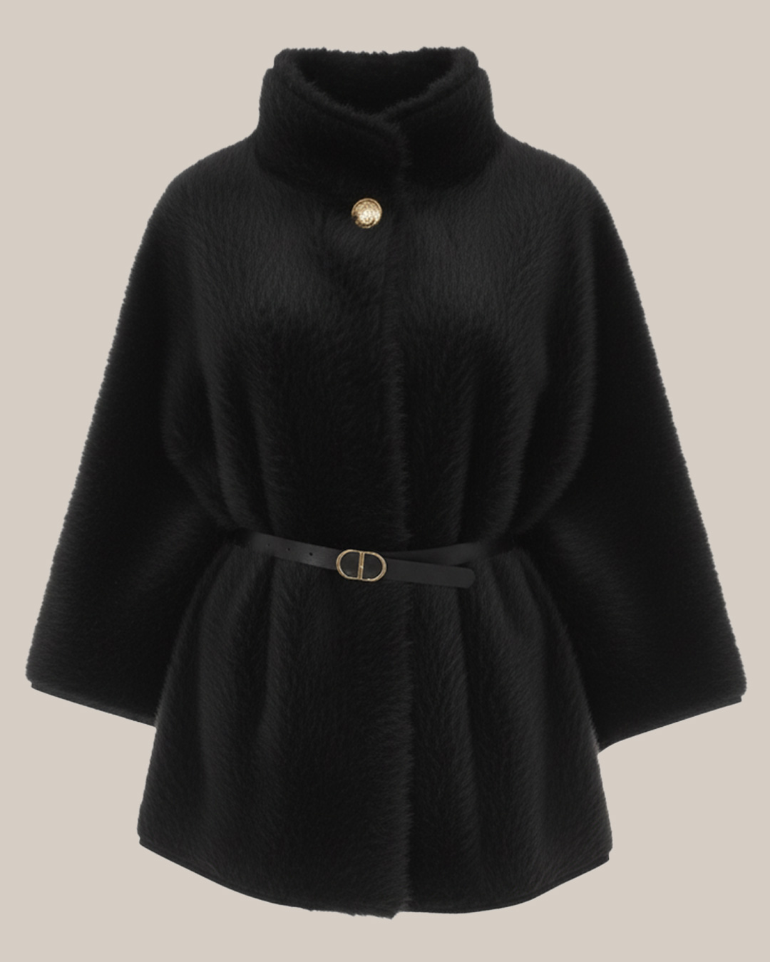 Abrigo Capa Pelo ▷ ¡Eleva tu estilo al siguiente nivel de sofisticación! Esta exclusiva prenda de pelo sintético destaca por su elegante corte tipo capa y cuello alto. Incluye un cinturón fino con hebilla dorada para definir la silueta y un botón joya superior. Su tejido es extremadamente suave y cálido. ¡El toque de lujo definitivo para tus eventos! ¡Brilla con Quiles_Shop!