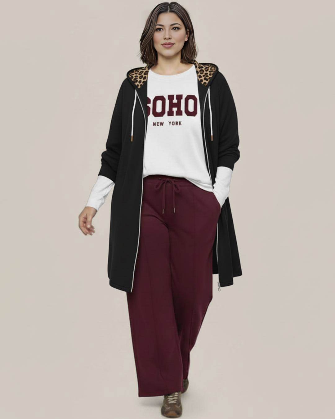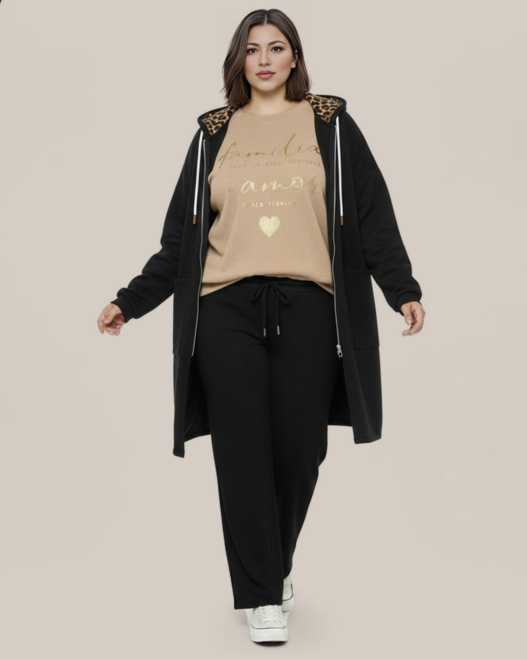 Abrigo Capucha Leopardo ▷ ¡El abrigo más trendy para tus días de entretiempo! Este abrigo de corte amplio y cómodo te encantará por su tejido en neopreno fino y su diseño, que te darán un look casual y con mucho rollo. El forro de leopardo en la capucha le da ese toque salvaje y juvenil que tanto se lleva. ¡Perfecto para tus looks de día a día!