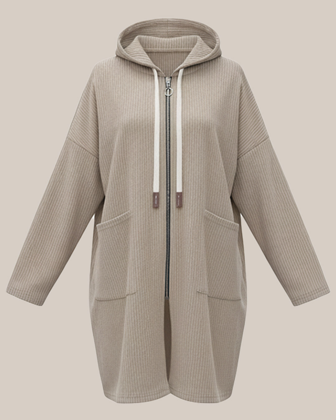 Abrigo Capucha Micropana ▷ ¡Añade un extra de suavidad y estilo con este abrigo low cost que amarás! Confeccionado en tejido de micropana, tiene un corte oversize súper juvenil y es perfecto para tallas grandes. Cuenta con cierre de cremallera, capucha y amplios bolsillos de parche que lo hacen muy trendy. Úsalo como chaqueta o abrigo ligero. ¡No te quedes sin esta prenda, cómprala ya!
