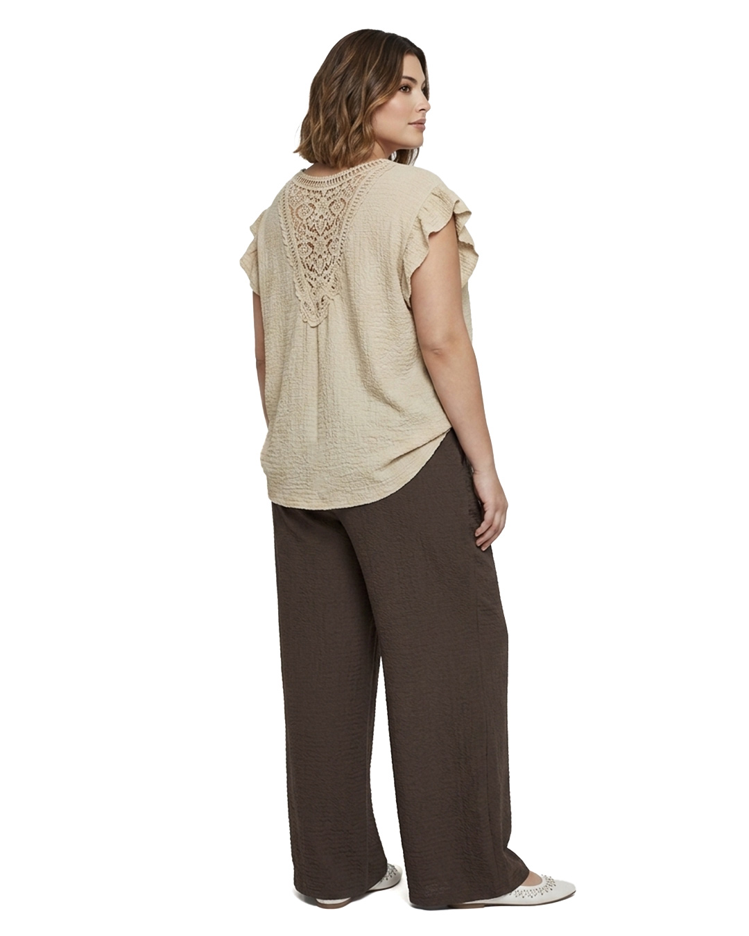 Blusa Boho ▷ ¡Vibra con el estilo más natural y relajado de la temporada! Esta prenda destaca por su tejido con textura y el precioso detalle de crochet en la espalda. Su diseño con volante en la manga y corte favorecedor realzan tus curvas con elegancia. ¡Combínala con tus pantalones o faldas favoritas y brilla!