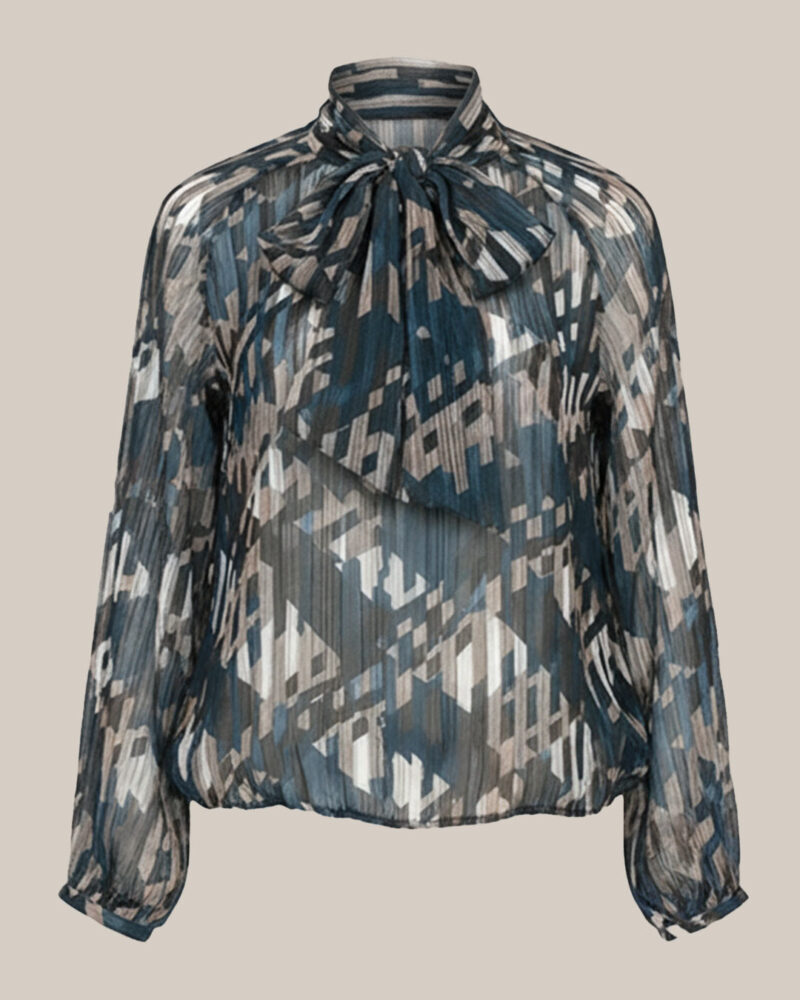 Blusa Diva ▷ ¡Atrévete con el toque chic y low cost de esta blusa con lazo! Su tejido y el print geométrico le dan un aire muy moderno y juvenil. El lazo en el cuello es el detalle elegante que la convierte en una prenda de fiesta o para ocasiones especiales. Tiene un corte amplio y mangas abullonadas. ¡Fíchala en Quiles_Shop!