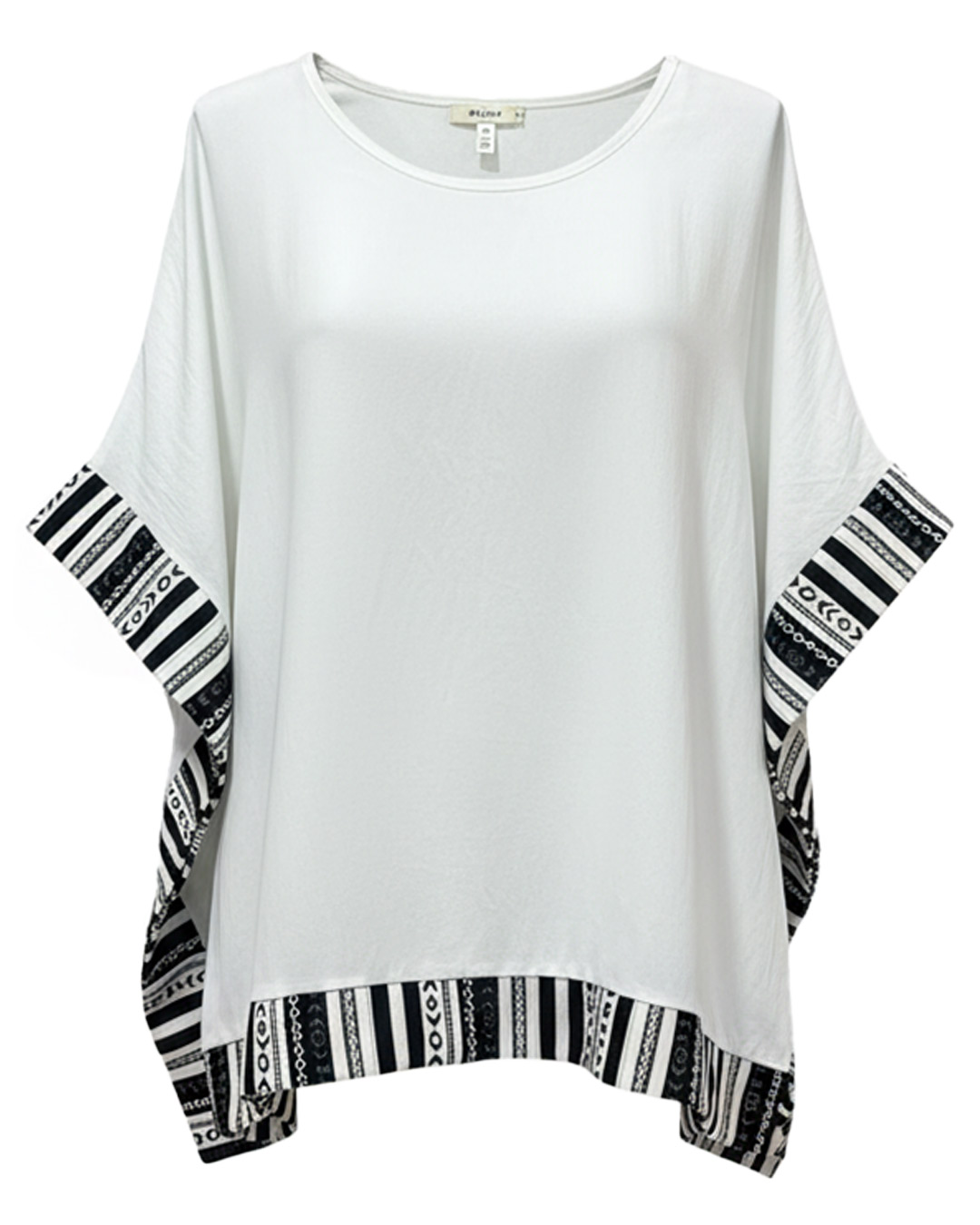 Blusa Ibizenca ▷ Envuelve tus días de luz con una caída espectacular que respira libertad en cada movimiento. Su diseño tipo poncho destaca por unos acabados étnicos en blanco y negro que elevan cualquier look, ofreciendo un tacto sedoso y fresco ideal para mujeres reales que buscan una elegancia joven y bohemia.