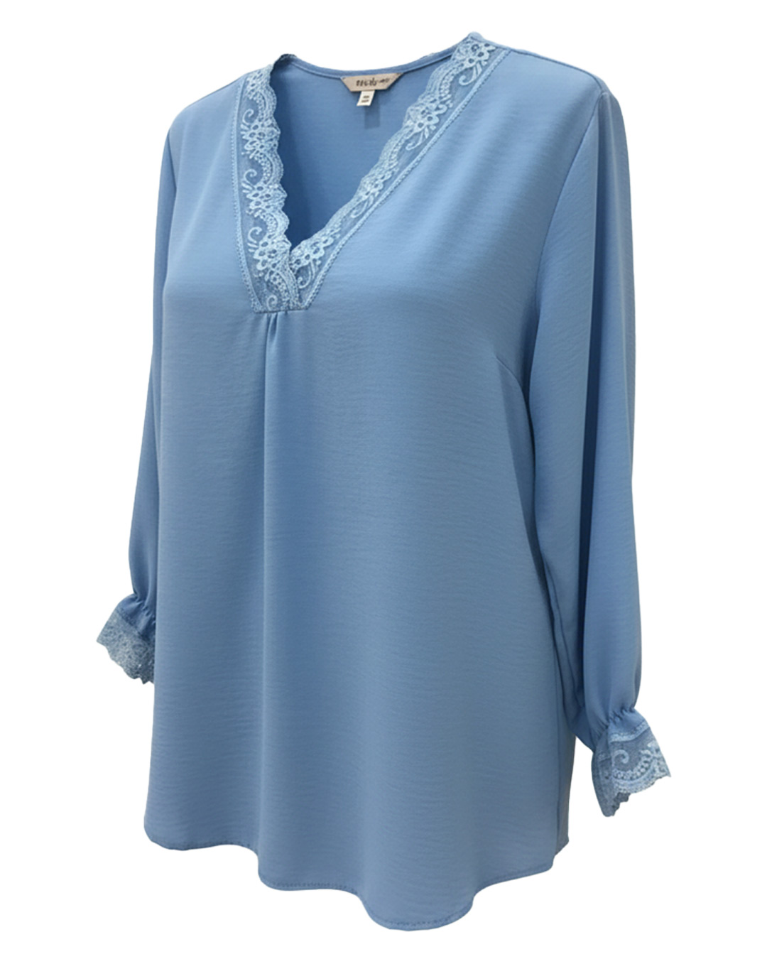 Blusa Lencera ▷ ¡Pura sofisticación en un solo diseño! Esta prenda destaca por su delicado encaje en el escote y los puños, aportando un aire romántico y femenino. Su tejido fluido garantiza una caída impecable que favorece a todos los tipos de cuerpo. Es la pieza ideal para combinar con tus prendas favoritas en Quiles_Shop.