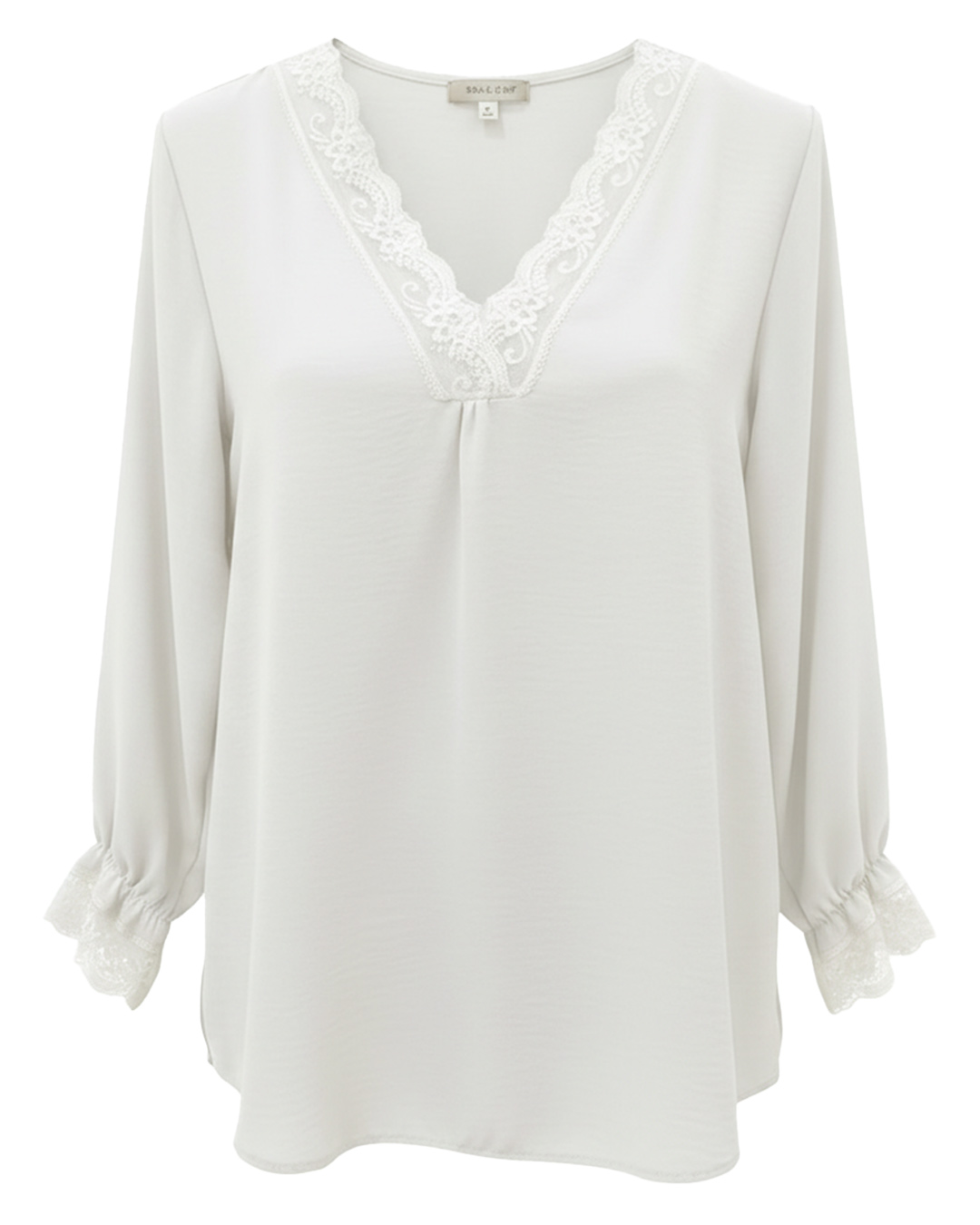 Blusa Lencera ▷ ¡Pura sofisticación en un solo diseño! Esta prenda destaca por su delicado encaje en el escote y los puños, aportando un aire romántico y femenino. Su tejido fluido garantiza una caída impecable que favorece a todos los tipos de cuerpo. Es la pieza ideal para combinar con tus prendas favoritas en Quiles_Shop.