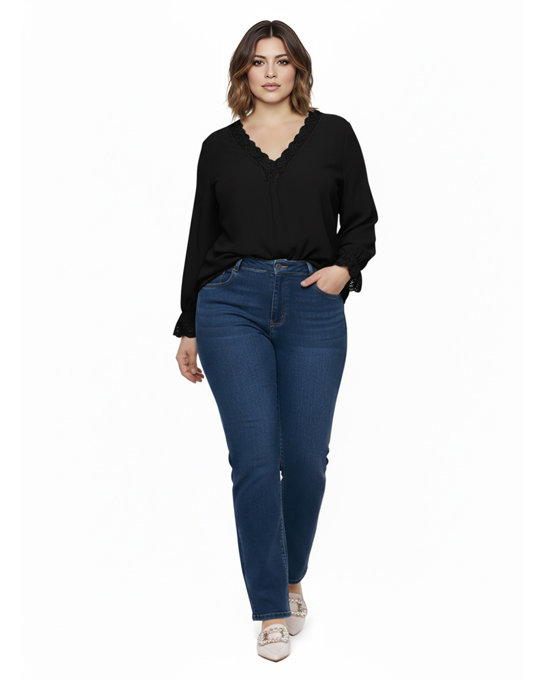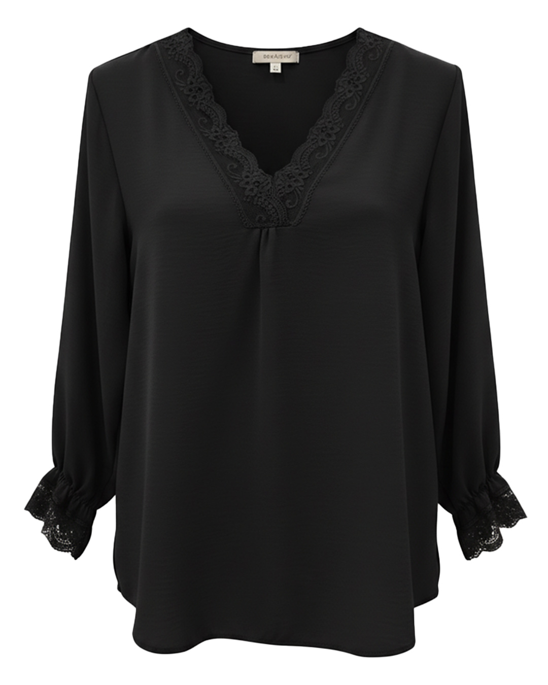 Blusa Lencera ▷ ¡Pura sofisticación en un solo diseño! Esta prenda destaca por su delicado encaje en el escote y los puños, aportando un aire romántico y femenino. Su tejido fluido garantiza una caída impecable que favorece a todos los tipos de cuerpo. Es la pieza ideal para combinar con tus prendas favoritas en Quiles_Shop.