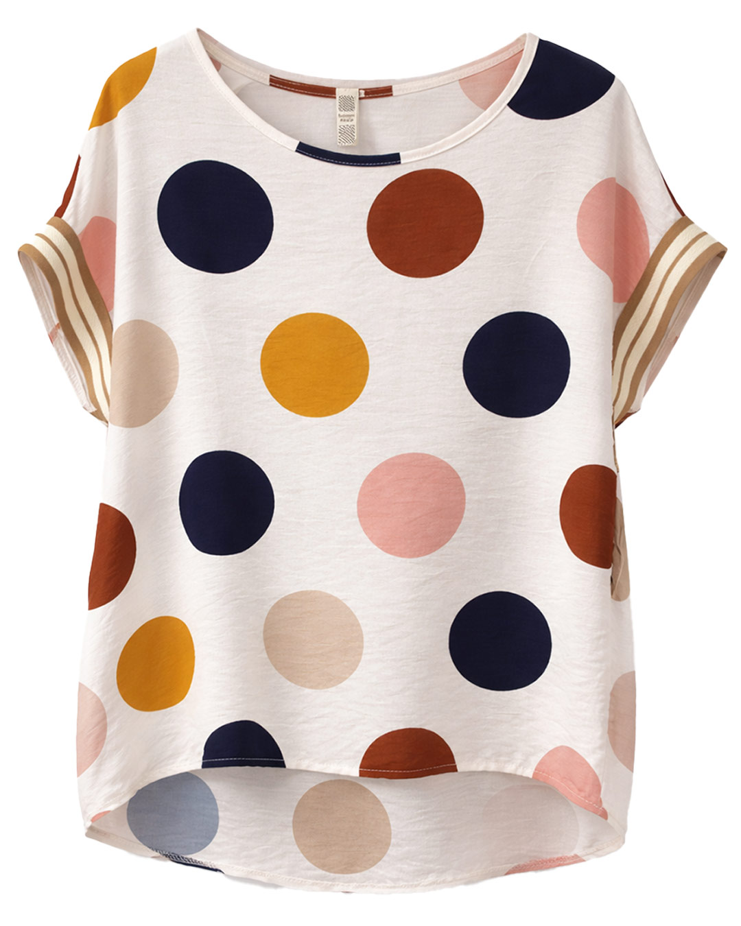 Blusa Lunares Pop ▷ ¡Vibra con los lunares más divertidos de la temporada! Esta prenda destaca por su tejido fluido que se adapta de maravilla a tus curvas sin marcar, aportando máxima comodidad. Su estampado pop en tonos vibrantes y las mangas con detalle de rayas le dan ese aire joven y moderno que buscas. Ideal para combinar y arrasar. ¡Pide la tuya ahora!