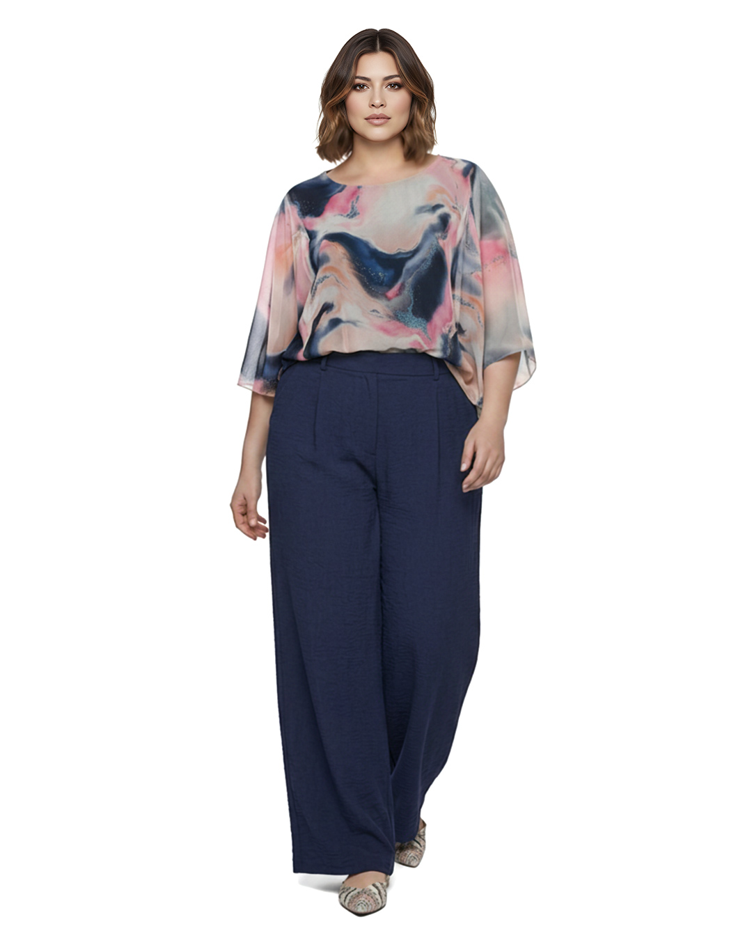 Blusa Mariposa ▷ Esta espectacular prenda destaca por su tejido de gasa ligera con un forro de punto elástico que garantiza total opacidad y confort. Presenta un diseño de manga tipo mariposa con un estampado artístico vibrante, ideal para mujeres reales de tallas curvy que buscan distinción y tendencias en Quiles_Shop.