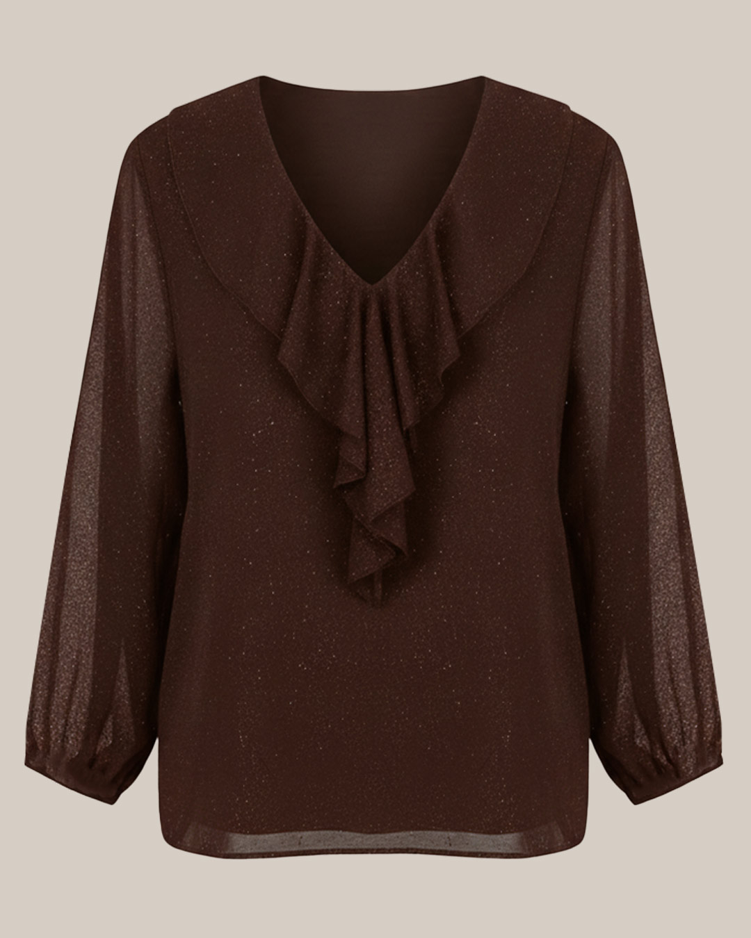 Blusa Romántica ▷ ¡Añade un aire sofisticado y luminoso a tu armario! Esta prenda destaca por su suave tejido de gasa adornado con sutiles destellos de brillo. Incluye un cómodo forro interior de punto que evita transparencias y asegura un ajuste perfecto. ¡Hazte con la blusa que iluminará todos tus eventos!