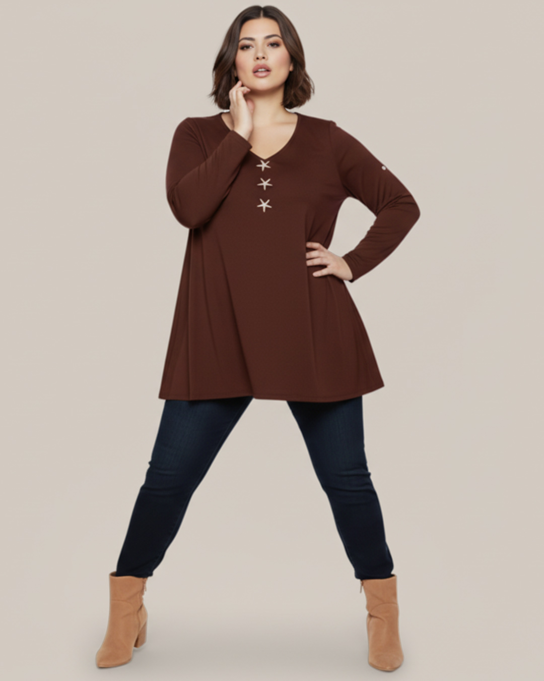 Blusa Santorini ▷ ¡Atrévete con un estilo de ensueño! Esta blusa con un toque de elegancia y un aire fresco te hará sentir especial. Su diseño de cuello en V y sus detalles dorados en la parte delantera la hacen única. Perfecta para un look con estilo. ¡Atrévete a brillar con nuestra moda low cost!