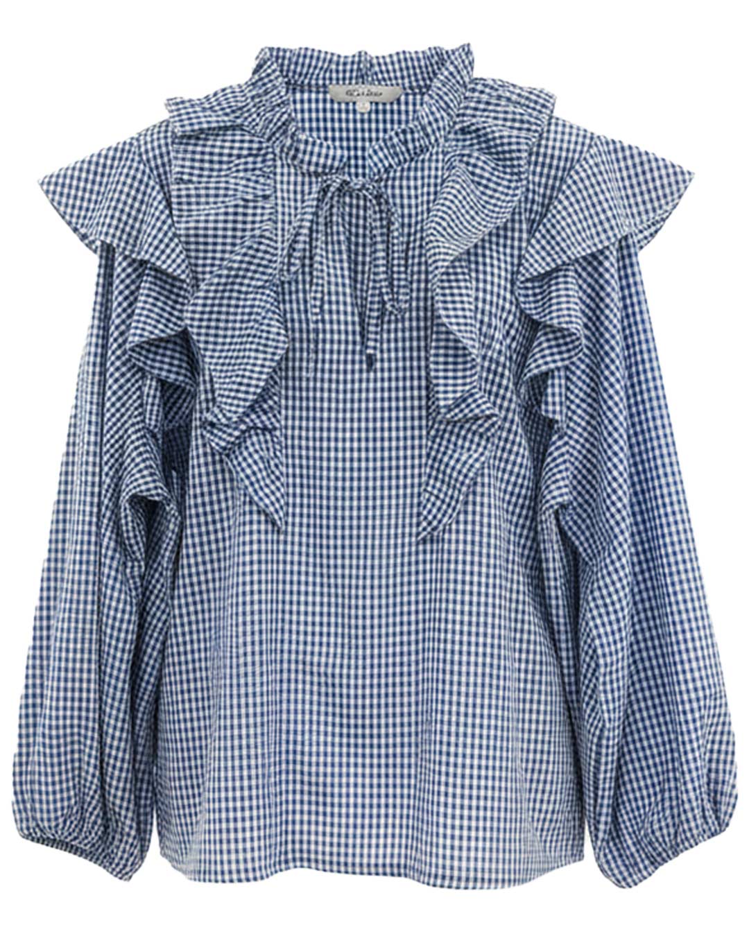 Blusa Vichy ▷ Enamórate de este diseño con el clásico estampado de cuadros. Destaca por su favorecedor cuello con volante y lazada, además de románticos detalles en el pecho y mangas abullonadas. Una prenda ligera y súper agradable al tacto, perfecta para mujeres de tallas curvy que buscan tendencias en Quiles_Shop.