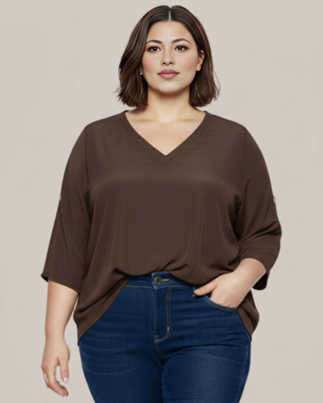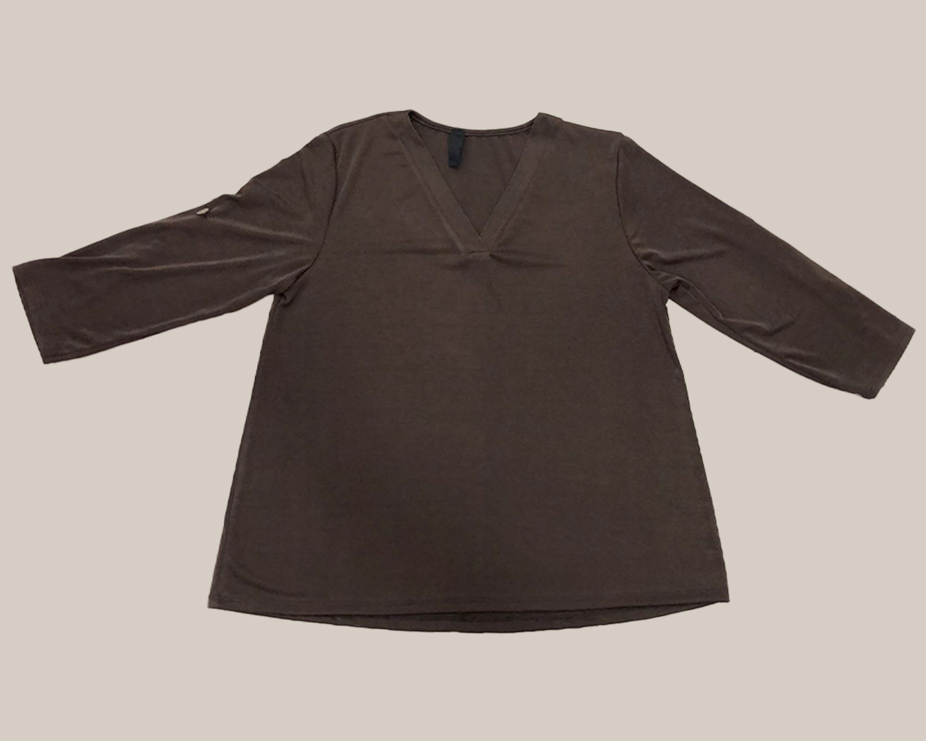 Camiseta Atardecer ▷ ¡Un fondo de armario para cualquier ocasión! Confeccionada en un tejido fluido y suave con un toque de brillo, esta camiseta tiene un favorecedor cuello de pico y manga francesa. Su corte amplio y versátil la hace perfecta para cualquier ocasión. ¡Combínala con tus pantalones o falda favorita y consigue un look sofisticado!