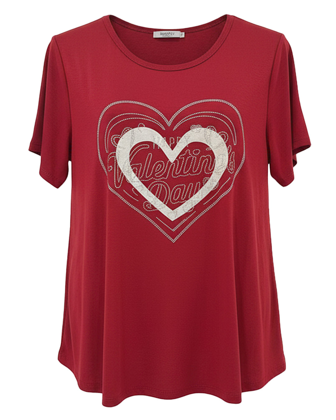 Camiseta Corazón ▷ Dale luz a tu armario con esta camiseta de punto suave y caída ligera que sienta de maravilla. Destaca por su precioso diseño central de corazón con detalles en strass, ideal para mujeres reales que buscan un estilo alegre y muy versátil. Con su cuello redondo y manga corta, es la aliada perfecta para disfrutar de un confort absoluto sin renunciar a la tendencia.
