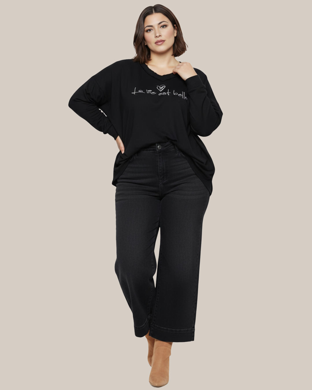 Camiseta La Vie ▷ ¡El buen rollo hecho camiseta! Esta prenda con un mensaje positivo te hará sonreír cada día. De manga larga y en algodón suave, tiene un diseño de corte ancho y cuello de pico con print que la hacen única. Es ideal para un look casual y moderno, la prenda perfecta para tu fondo de armario. ¡No te quedes sin ella!
