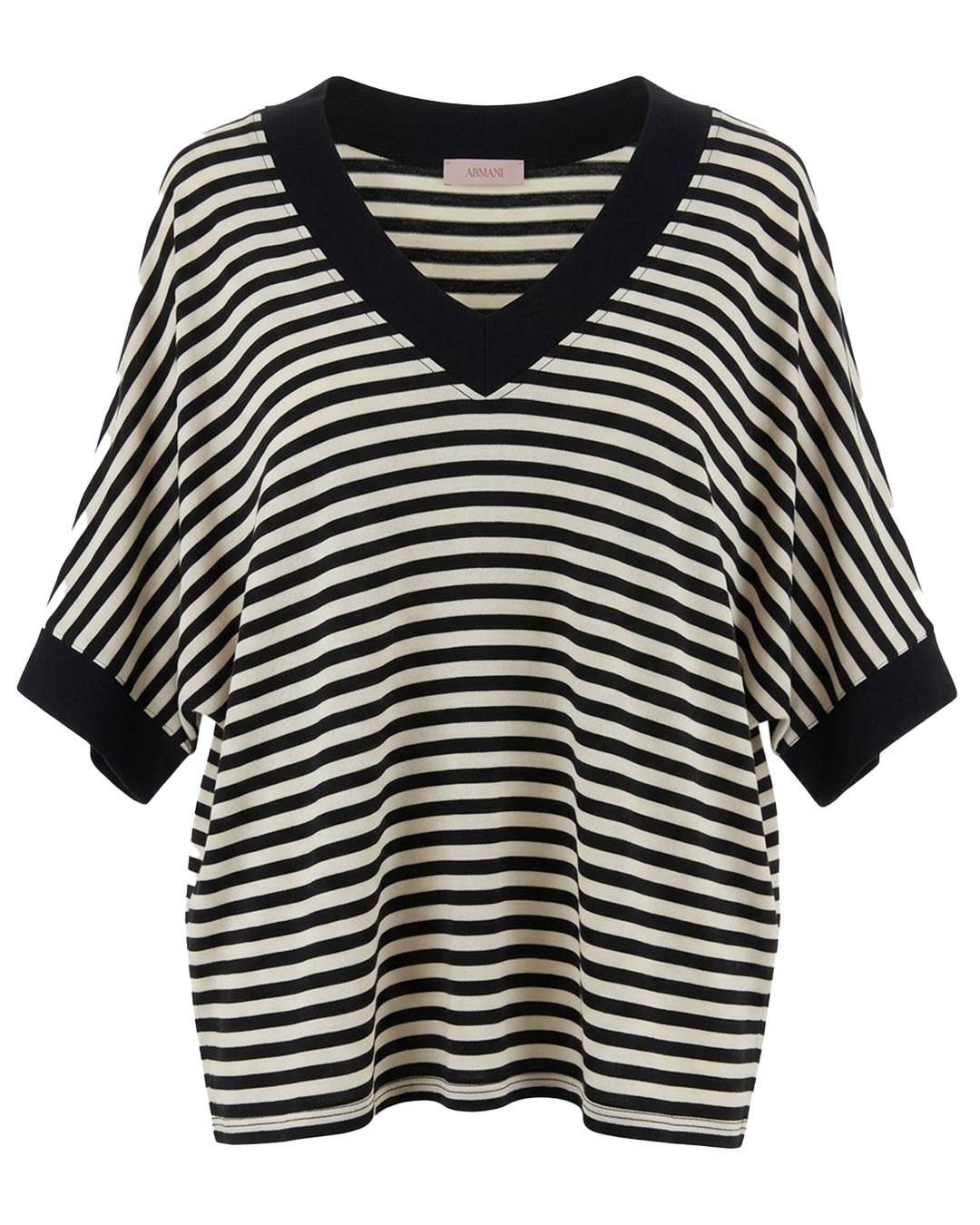 Camiseta Marinera ▷ Esta prenda destaca por su tejido de punto suave con el icónico estampado de rayas horizontales. Su diseño oversize con cuello en pico y manga corta de corte ranglán ofrece una libertad de movimiento excepcional, siendo la elección perfecta para mujeres reales que buscan un look joven y versátil.
