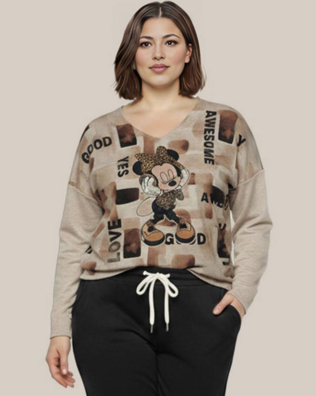 Camiseta Minnie Music▷ ¡Dale un toque desenfadado y lleno de personalidad a tu outfit! Esta camiseta con un divertido estampado de Minnie y un sutil brillo es ideal para inyectar un toque divertido a tu estilo. Su corte amplio y su tacto suave la hacen súper cómoda. La prenda ideal para mujeres que quieren un look juvenil, relajado y divertido. ¡Consigue la tuya y haz que la música suene!