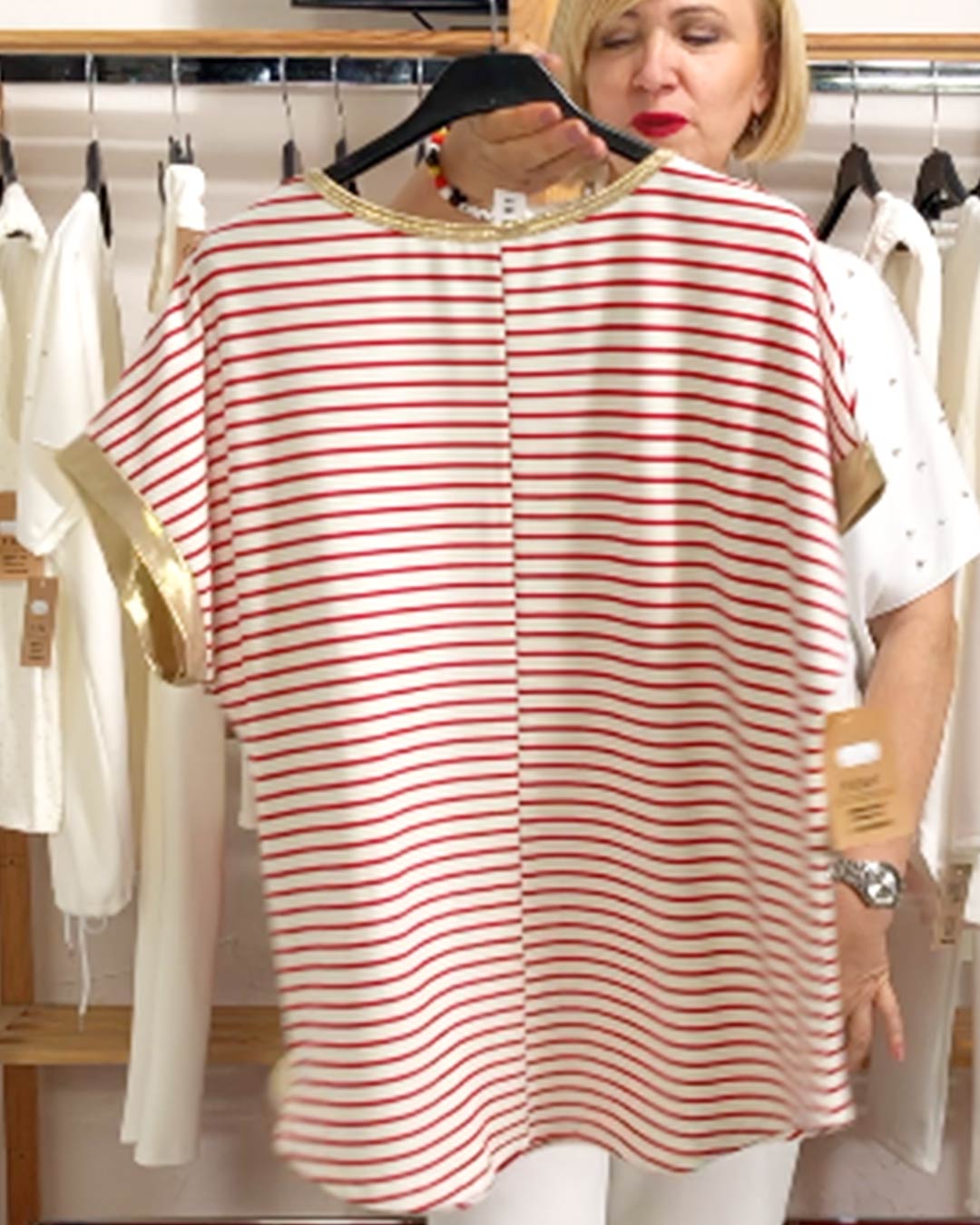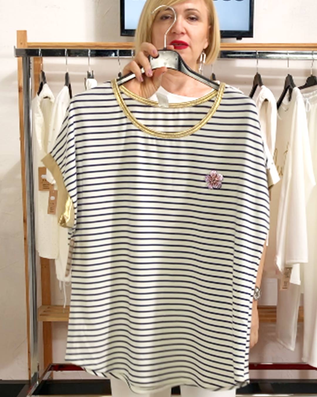 Camiseta Naútica ¡Dale un toque marinero chic a tu look! Su diseño clásico se reinventa con un toque en dorado moderno y favorecedor. Perfecta para un look casual con estilo, su tejido suave te hará sentir cómoda todo el día. ¡Y lo mejor es su precio low cost! ¡No te quedes sin ella, añade esta joya a tu colección y presume de estilo!