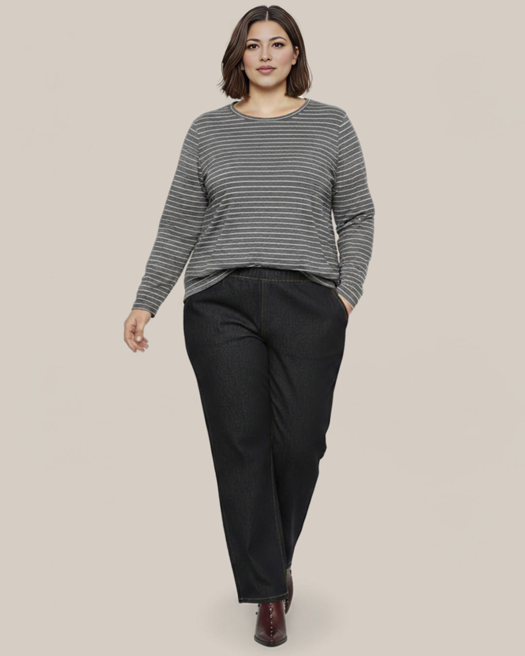 Camiseta Rayas ▷ ¡El básico que necesitas para un look actual! Esta camiseta de manga larga y escote redondo combina rayas para un estilo atemporal que nunca falla. Su corte evasé te ofrece la comodidad y libertad de movimiento que buscas. Es la prenda perfecta para un outfit casual chic. ¡Un clásico imprescindible en tu armario que puedes comprar ahora mismo!