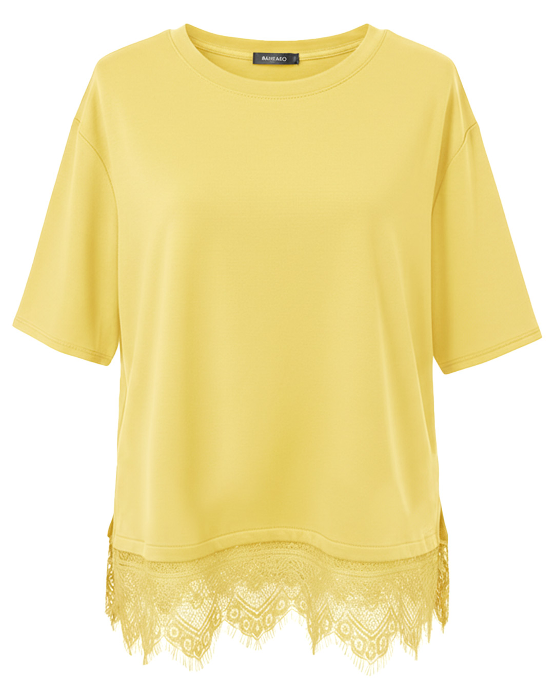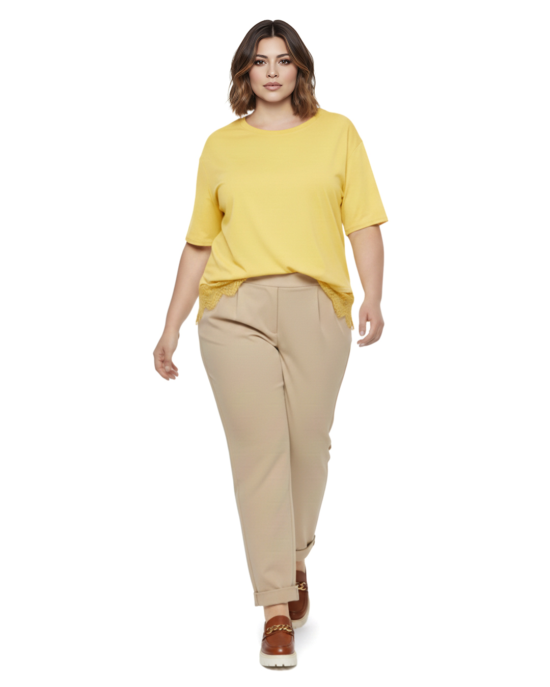 Camiseta Romántica ▷ Descubre la elegancia de esta prenda básica renovada con un delicado acabado de suave encaje en el bajo. Su tejido en base de algodón y corte cómodo la convierten en la opción perfecta para mujeres reales que buscan un toque sofisticado en su día a día. Encuentra moda de tendencia low cost en Quiles_Shop.