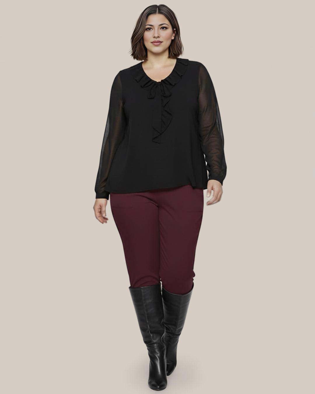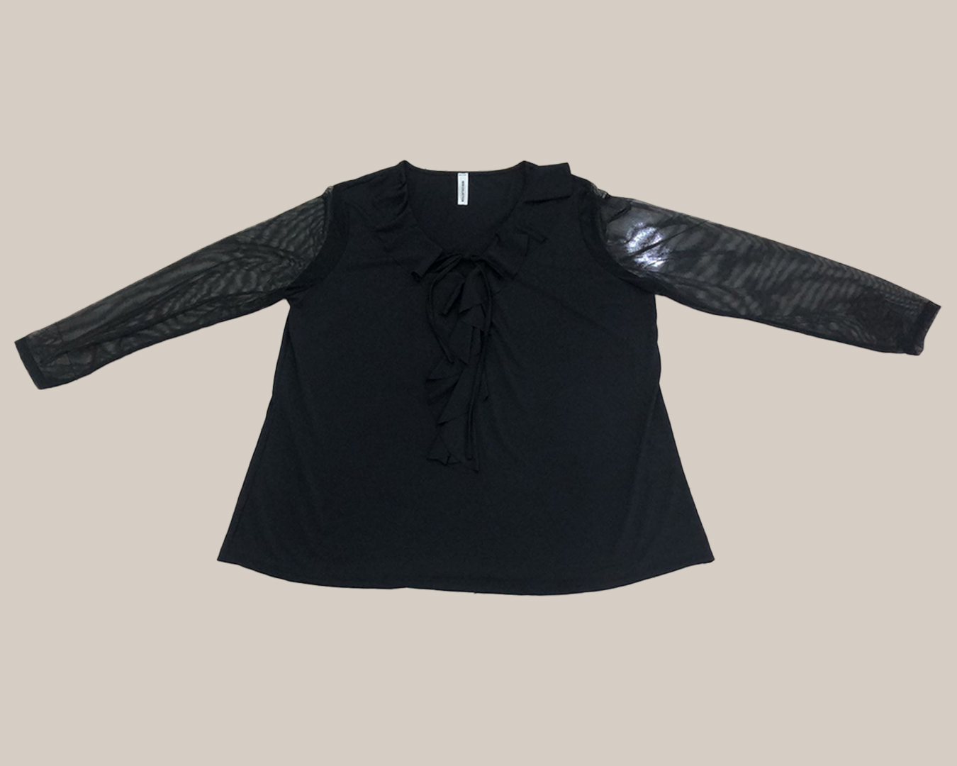 Camiseta Romantica ▷ ¡Añade un toque de feminidad y glamour a tu look de forma low cost! Esta camiseta en ideal para mujer curvy, tiene un escote en pico con volantes que le da un aire romántico. Sus mangas de tul sedoso son semitransparentes y le dan un toque juvenil y sofisticado. Es perfecta para looks arreglados o de noche. ¡Pídela ahora!