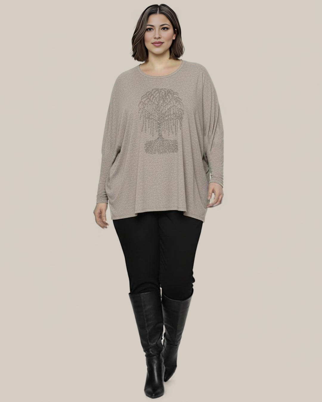 Jersey Árbol Vida ▷ ¡Un jersey lleno de significado con un glamour inigualable! Este modelo oversize es ideal para tallas grandes, ofreciendo un fit juvenil y cómodo. El espectacular Árbol de la Vida está hecho con pequeños brillantes que le dan un toque chic. Es de manga larga y tejido en tacto lana. ¡Vístete a la moda curvy y con personalidad! ¡Fíchalo en Quiles_Shop!