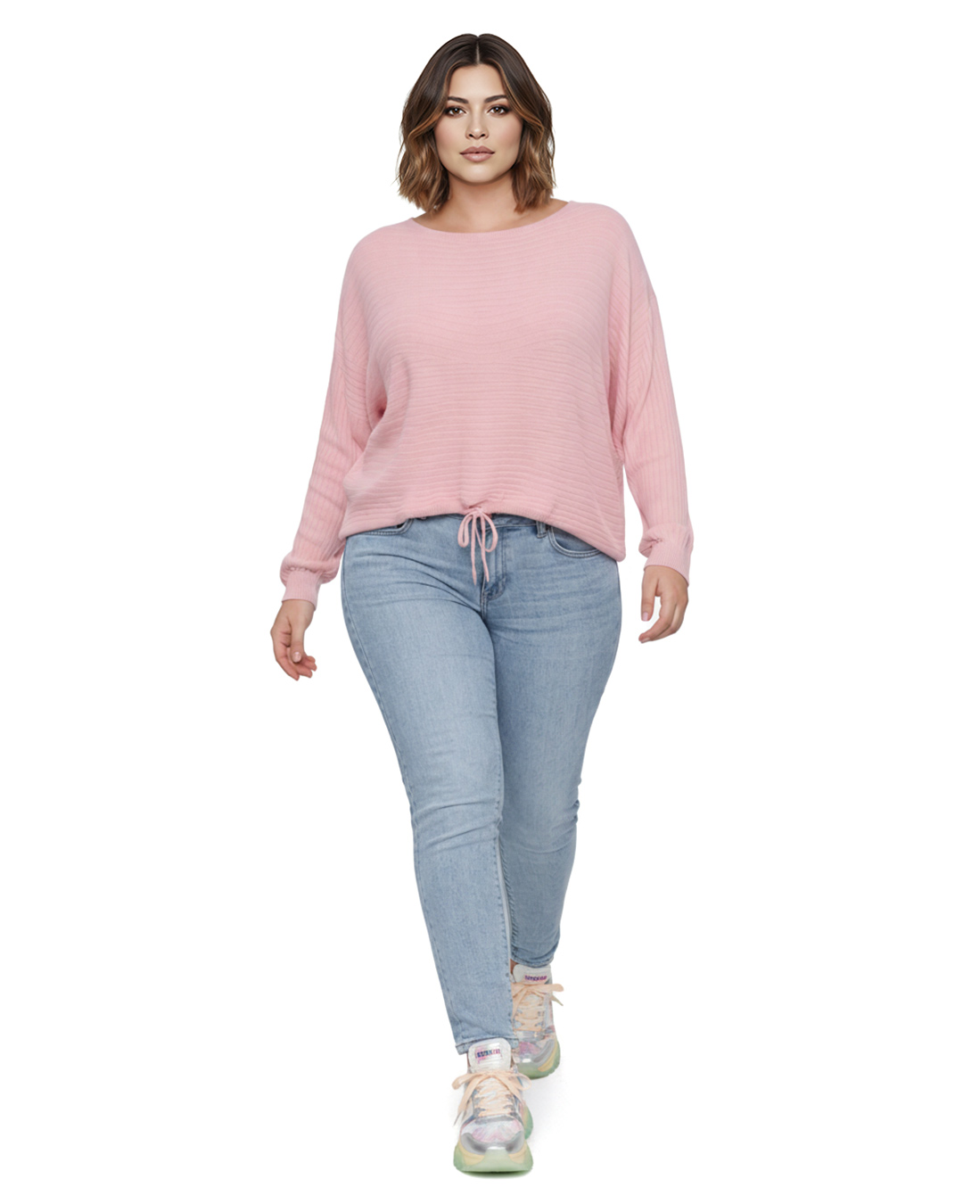 Jersey Cozy ▷ Siente la caricia de este punto ultra suave diseñado para tu día a día. Su corte relajado y el detalle ajustable en el bajo lo convierten en una prenda versátil que favorece a todas las siluetas. Una pieza esencial de nuestra nueva colección para mujeres que buscan tendencia y bienestar en Quiles_Shop.