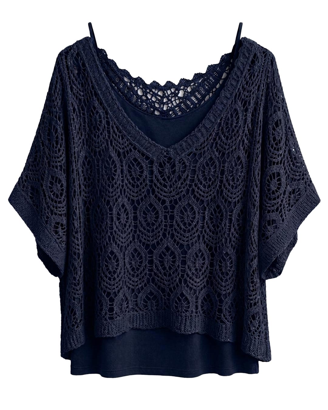 Jersey Crochet ▷ ¡Enamórate del estilo bohemio más dulce y sofisticado! Este jersey destaca por su exquisito trabajo de crochet artesanal en un suave hilo de viscosa. Su diseño de corte amplio y cuello pico favorece a mujeres reales, y lo mejor: ¡incluye una camiseta básica a tono para un look impecable y cómodo al instante! Un toque juvenil y chic para tus días.