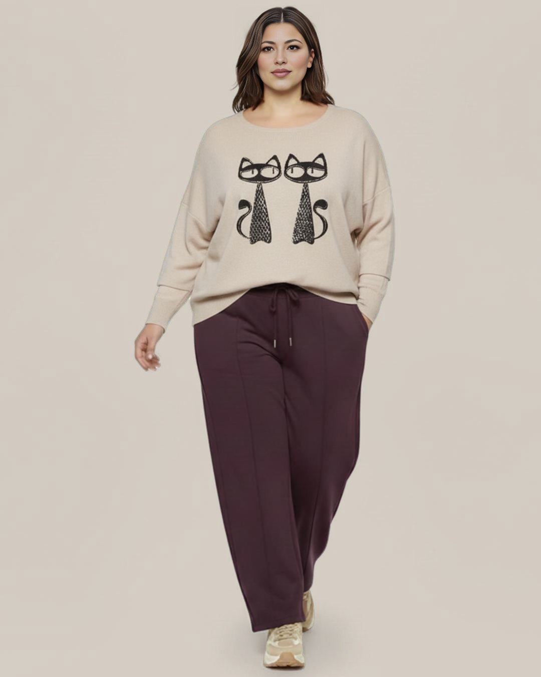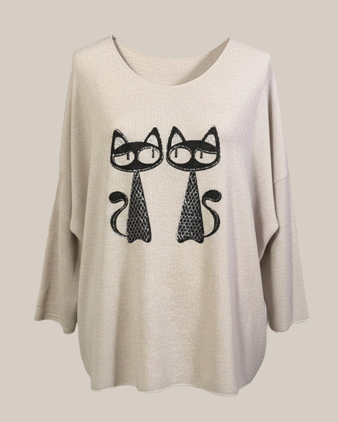 Jersey Gatos ▷ ¡El jersey más divertido y original ha llegado a tu armario! Con un diseño de dos gatos, esta prenda de punto suave y de corte amplio es perfecta para añadir un toque de diversión a tus looks. Ideal para combinar y darle a tu look un estilo desenfadado. ¡No lo pienses más y hazte con él por un precio increíblemente low cost!