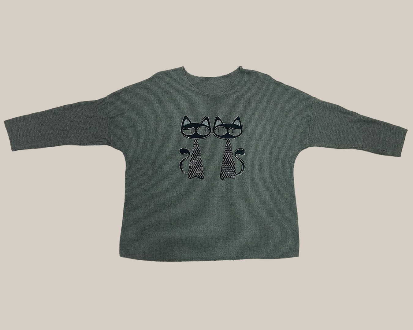 Jersey Gatos ▷ ¡El jersey más divertido y original ha llegado a tu armario! Con un diseño de dos gatos, esta prenda de punto suave y de corte amplio es perfecta para añadir un toque de diversión a tus looks. Ideal para combinar y darle a tu look un estilo desenfadado. ¡No lo pienses más y hazte con él por un precio increíblemente low cost!