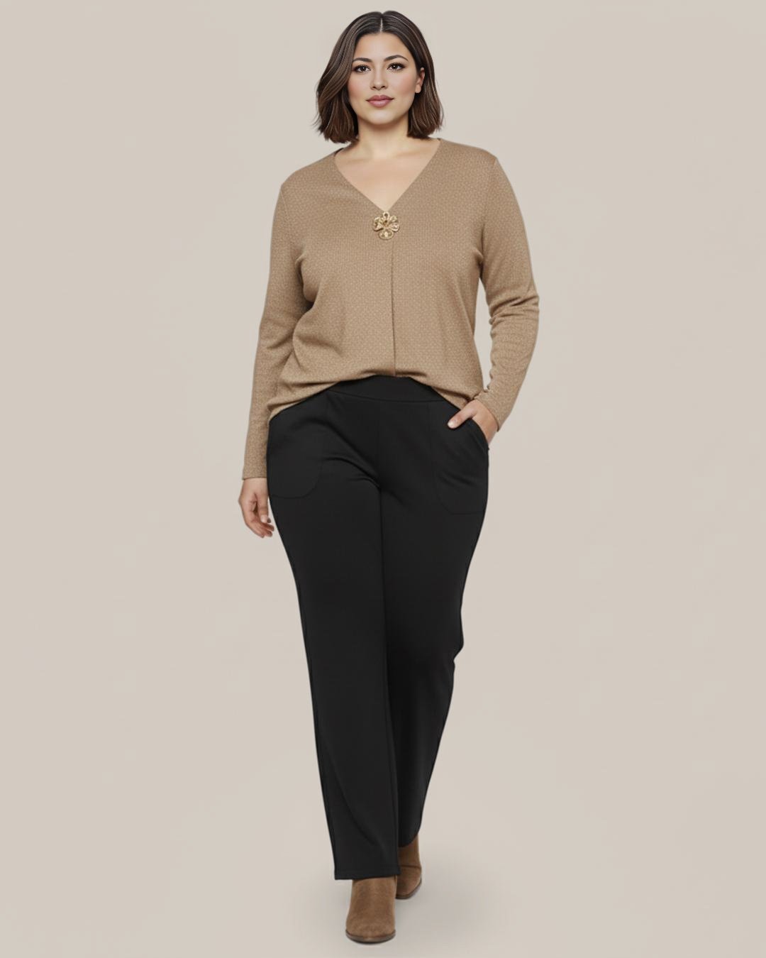 Jersey Glamour ▷ ¡Una pieza imprescindible para elevar tu armario esta temporada! Está confeccionado en un tejido suave en tacto lana con un hilo de brillo sutil. Su escote en pico está adornado con un elegante broche que se puede retirar. El corte es juvenil y acampanado. ¡Una prenda perfecta para cenas y looks de noche sin renunciar a la comodidad! ¡Brilla con el estilo de Quiles_Shop!