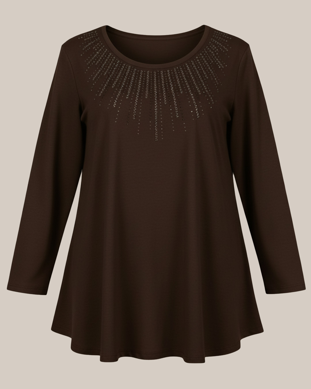 Jersey Luxury ▷ ¡Añade un destello de brillo chic a tus outfits! Este jersey ideal para tallas grandes, tiene un fit juvenil con corte en A que es muy favorecedor. El detalle trendy y luxury son los brillantes en el cuello que simulan un collar. Es de manga larga y tejido en tacto lana suave. ¡Perfecto para looks de día o noche! ¡No te quedes sin él en Quiles_Shop!