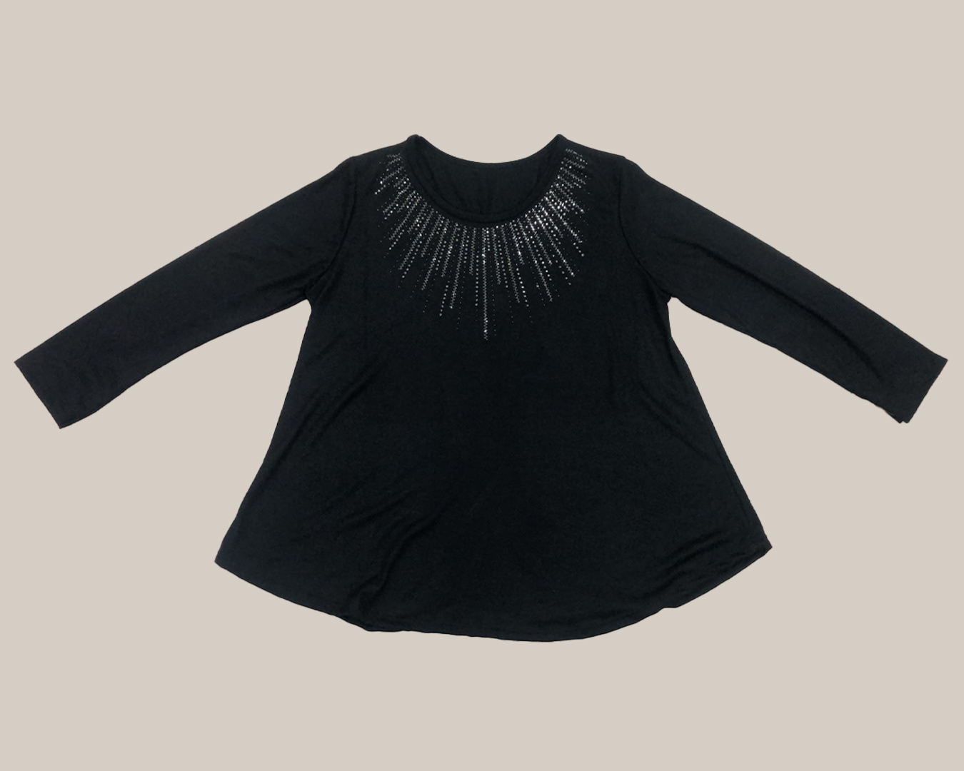 Jersey Luxury ▷ ¡Añade un destello de brillo chic a tus outfits! Este jersey ideal para tallas grandes, tiene un fit juvenil con corte en A que es muy favorecedor. El detalle trendy y luxury son los brillantes en el cuello que simulan un collar. Es de manga larga y tejido en tacto lana suave. ¡Perfecto para looks de día o noche! ¡No te quedes sin él en Quiles_Shop!