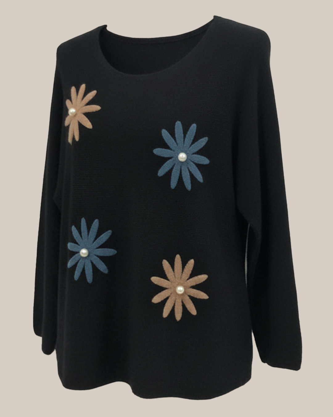 Jersey Margaritas ▷ ¡Una pieza imprescindible para elevar tu armario esta temporada! Este jersey en tacto lana es perfecto, ofrece un calor confortable y un fit juvenil. Su diseño liso se ve realzado por las margaritas en relieve, con una perla en el centro para un toque chic. El corte es holgado y favorecedor. ¡Encuentra el estilo que te define en Quiles_Shop!