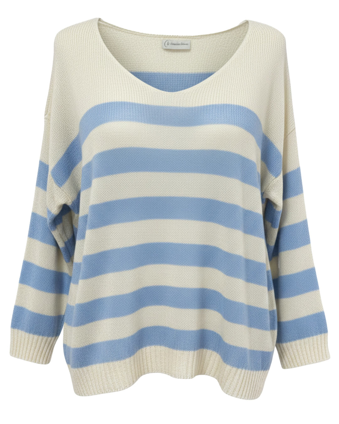 Jersey Marinero Chic ▷ Disfruta de la frescura y suavidad de este tejido de hilo, ideal para los días de entretiempo. Su diseño atemporal de rayas y corte relajado favorece a todas las siluetas, aportando un aire sofisticado y cómodo. Una prenda esencial de tendencia low cost en Quiles_Shop.