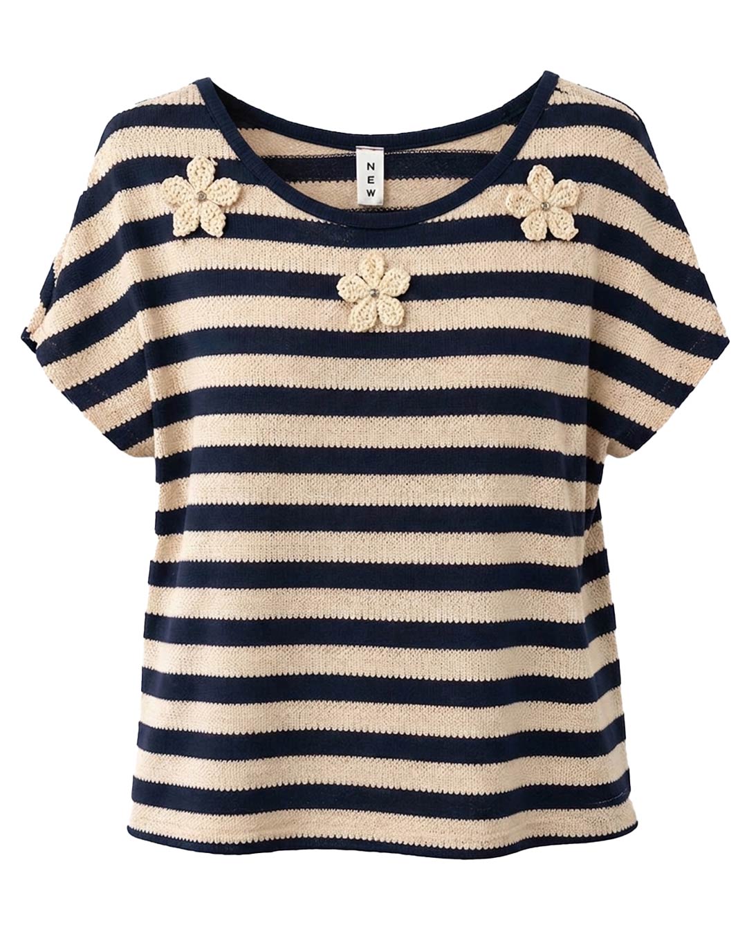 Jersey Marinero Margaritas ▷ ¡El clásico navy se reinventa! Este jersey de punto ligero destaca por sus icónicas rayas y unos preciosos apliques de flores en relieve con brillo. Diseñado para mujeres reales, su corte amplio garantiza frescura y un estilo joven irresistible. Es la prenda perfecta para renovar tus básicos con la originalidad de Quiles_Shop