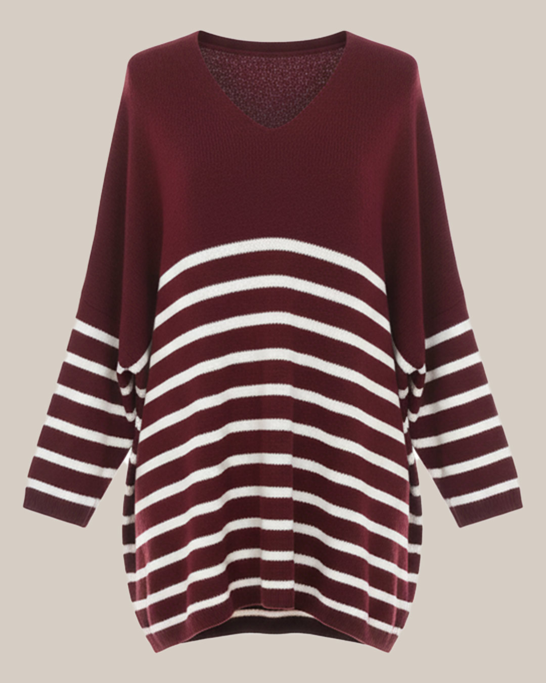 Jersey Maxi Rayas ▷ ¡La clave de un look comfy y actual es esta prenda! Este jersey es ideal para tallas grandes y está diseñado con rayas horizontales que le dan un estilo navy renovado. Su corte oversize con cuello de pico es muy favorecedor y juvenil. El tejido es en tacto lana muy calentito. ¡Descubre el poder de las rayas trendy en Quiles_Shop!