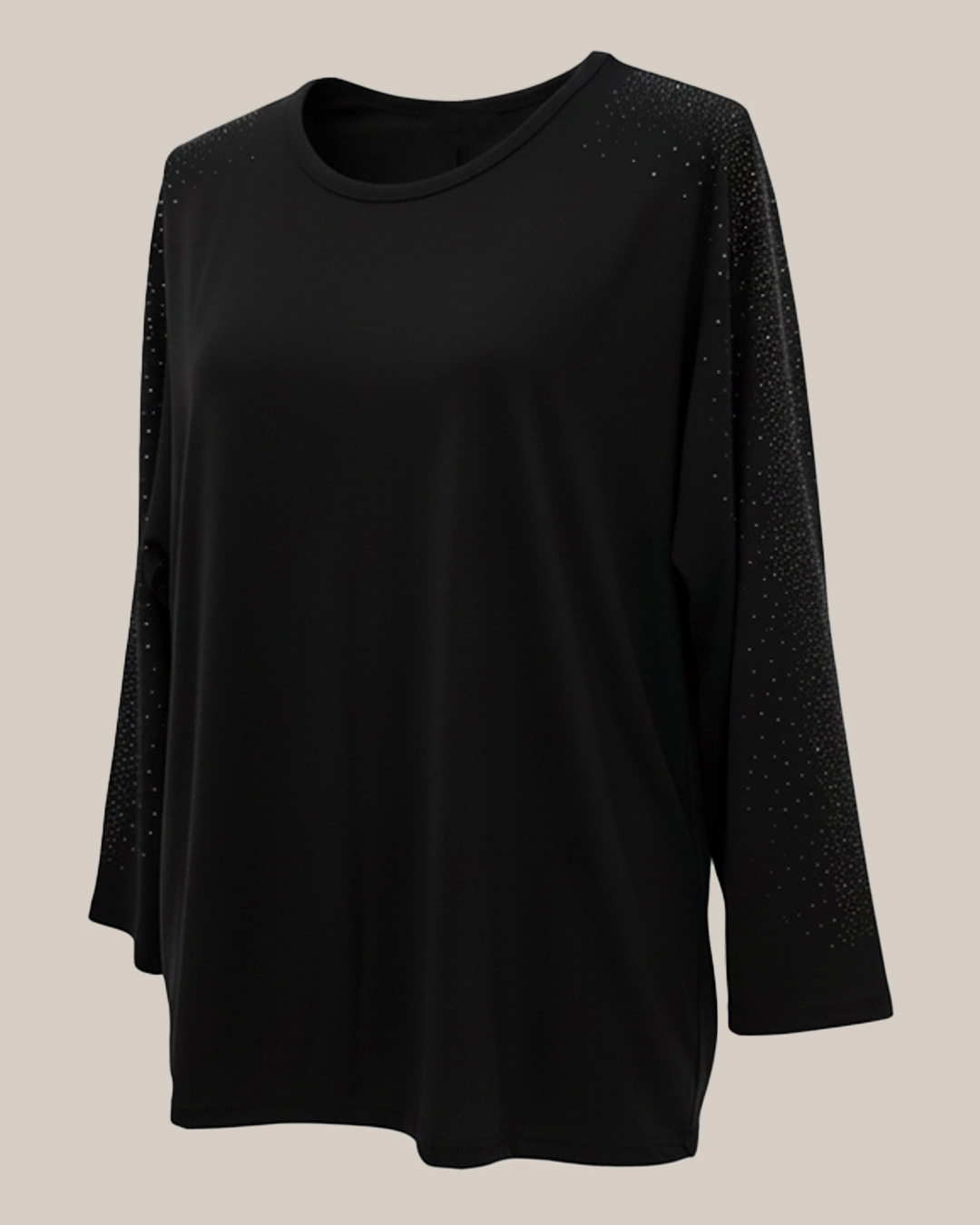 Jersey Stellar ▷ ¡Un jersey low cost súper versátil para tu fondo de armario curvy! Tiene un fit juvenil y el detalle glam lo dan los pequeños brillantes que decoran los hombros y mangas, simulando un rocío de estrellas. Su tejido es suave en tacto lana, calentito y cómodo. ¡Eleva tus básicos con este toque de brillo! ¡Descubre el poder del detalle en Quiles_Shop!