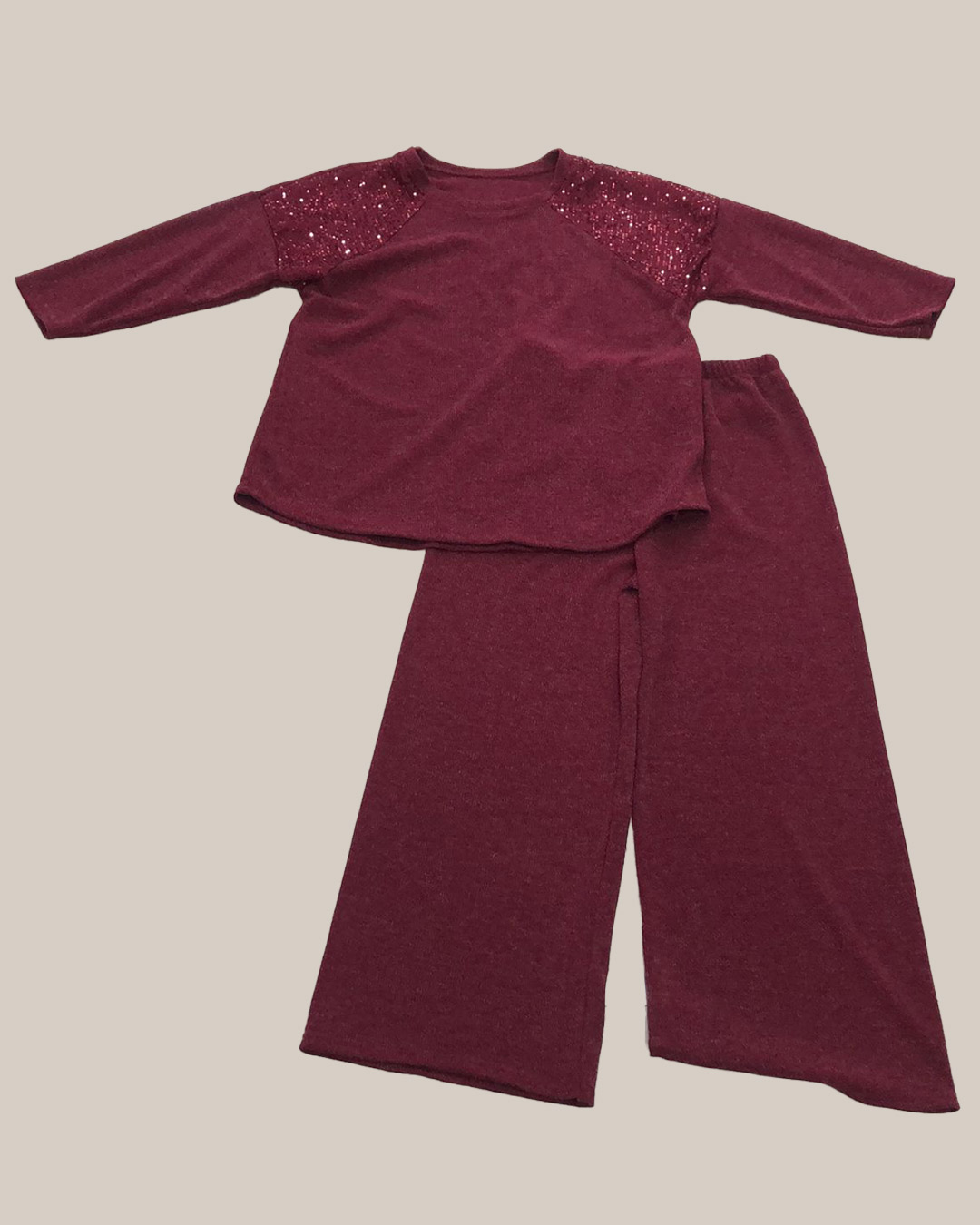 Outfit Velvet ▷ ¡El conjunto más trendy y cómodo que te hará brillar a precio low cost! Este outfit de dos piezas, ideal para tallas grandes, está confeccionado en un suave punto calentito. Incluye un jersey con hombros de lentejuelas y un pantalón palazzo a juego. Su corte juvenil es muy favorecedor. ¡Perfecto para looks de día o noche! ¡Moda curvy y chic te espera en Quiles_Shop!