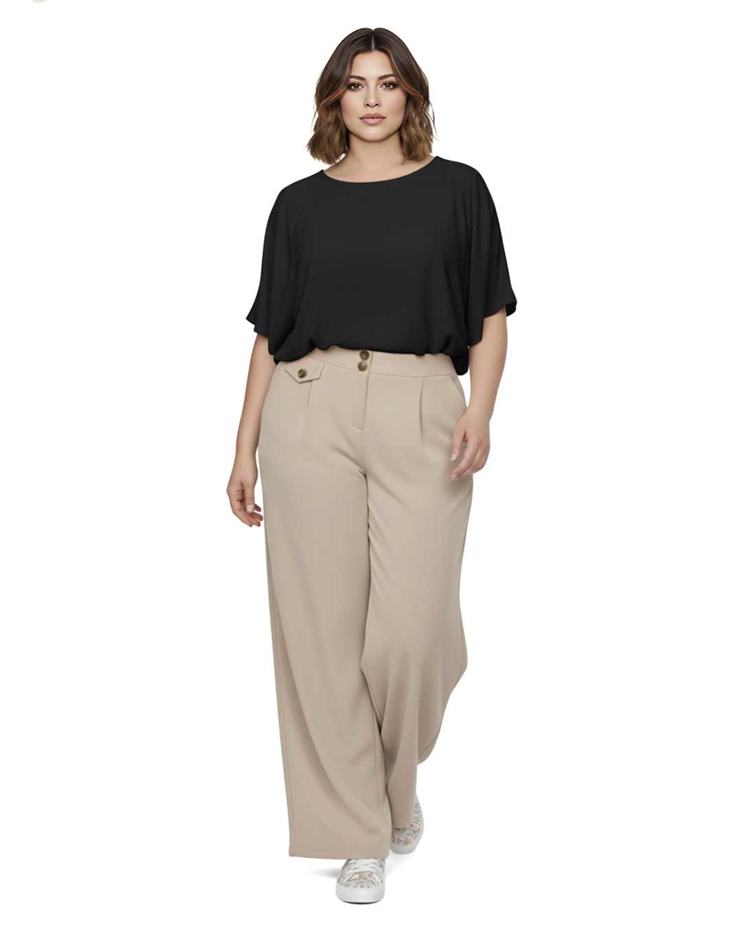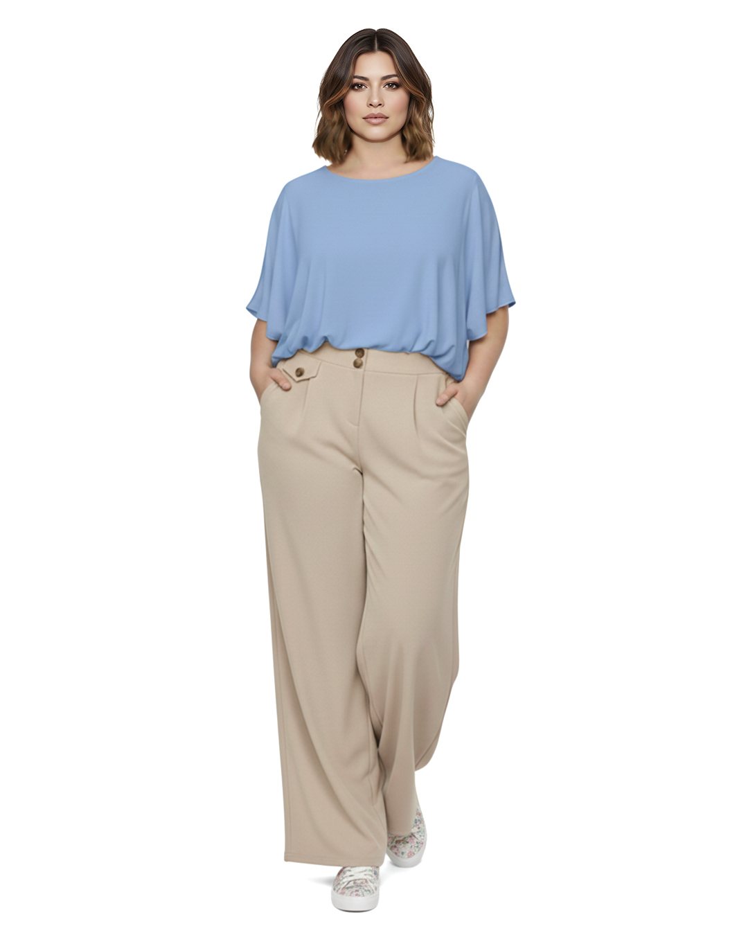Pantalón Capri ▷ Siente la libertad de este diseño en tejido fluido con elastán que se adapta a tus movimientos sin oprimir. Incorpora bolsillos, cinturilla elástica en espalda y una caída impecable que favorece la silueta de mujeres reales de tallas curvy. Es la prenda definitiva para disfrutar del confort en cualquier ocasión. Compra ahora en Quiles_Shop.