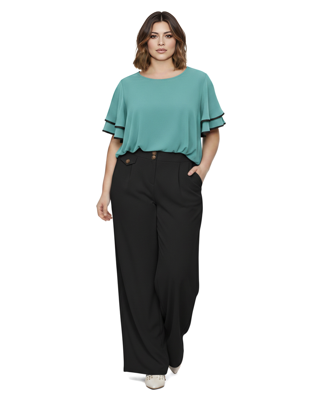 Pantalón Capri ▷ Siente la libertad de este diseño en tejido fluido con elastán que se adapta a tus movimientos sin oprimir. Incorpora bolsillos, cinturilla elástica en espalda y una caída impecable que favorece la silueta de mujeres reales de tallas curvy. Es la prenda definitiva para disfrutar del confort en cualquier ocasión. Compra ahora en Quiles_Shop.