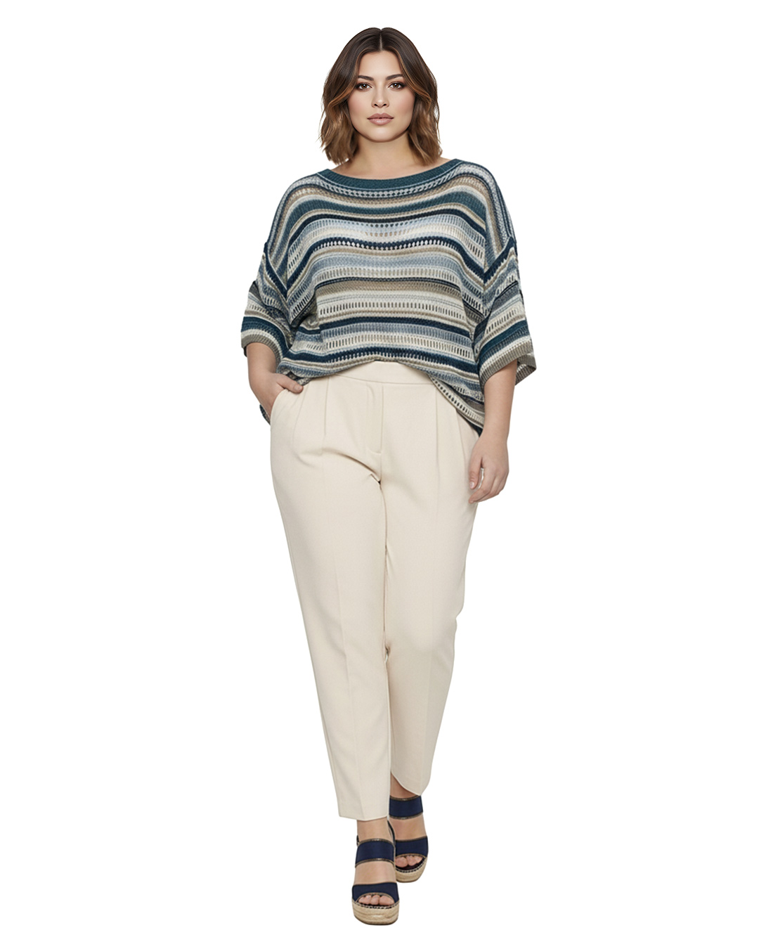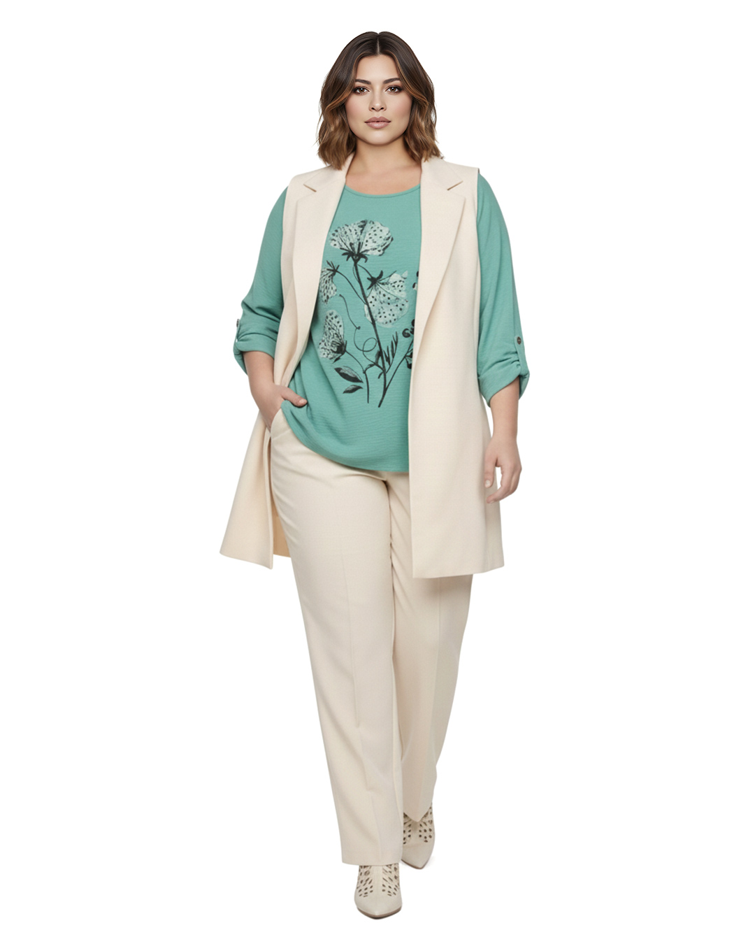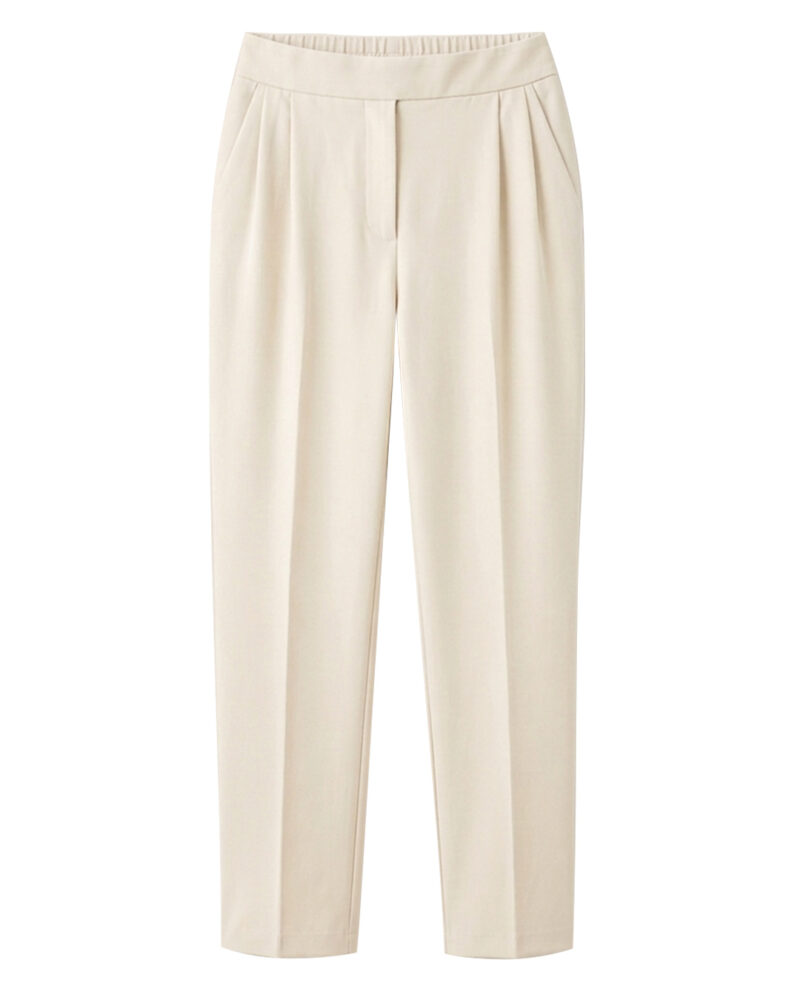 Pantalón Crepé Pinzas ▷ Disfruta de la caída impecable de este diseño confeccionado en tejido de suave crepé. Cuenta con elegantes pinzas delanteras que estilizan la figura, cintura elástica en la espalda para un ajuste perfecto y prácticos bolsillos. Una prenda sofisticada de tendencia low cost para mujeres reales en Quiles_Shop.