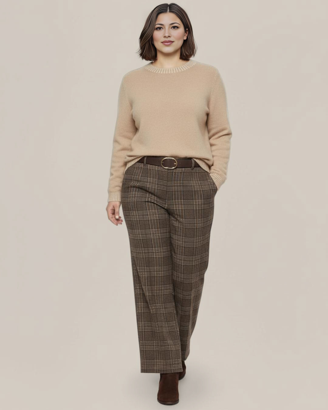 Pantalón Cuadros ▷ ¡Luce el estilo británico más sofisticado y favorecedor! Este diseño es la elección ideal por su suave tacto paño y su corte palazzo que estiliza. Incluye bolsillos y un cinturón para definir tu silueta de forma impecable. Es la prenda perfecta esta temporada para completar tus looks . ¡Marca tendencia con Quiles_Shop!