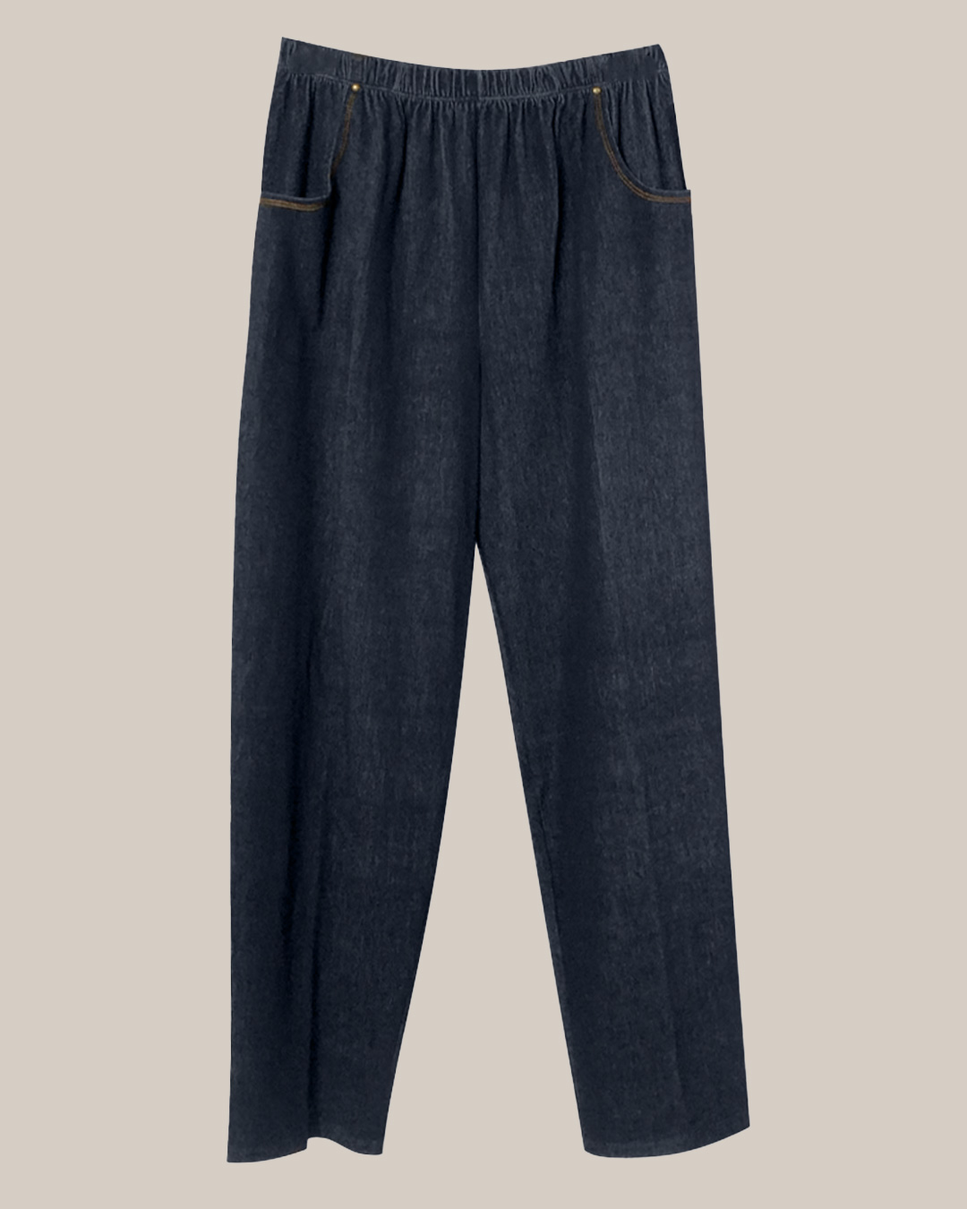Pantalón Efecto Vaquero ▷ ¡La comodidad de un pantalón de punto con el look juvenil de unos jeans! Este pantalón es perfecto para todas las siluetas, la cinturilla elástica asegura un ajuste cómodo. El tejido imita al denim y tiene bolsillos que le dan un aire actual. Es un básico low cost que puedes para cualquier look. ¡Comodidad y tendencia en Quiles_Shop, añádelo a tu cesta!